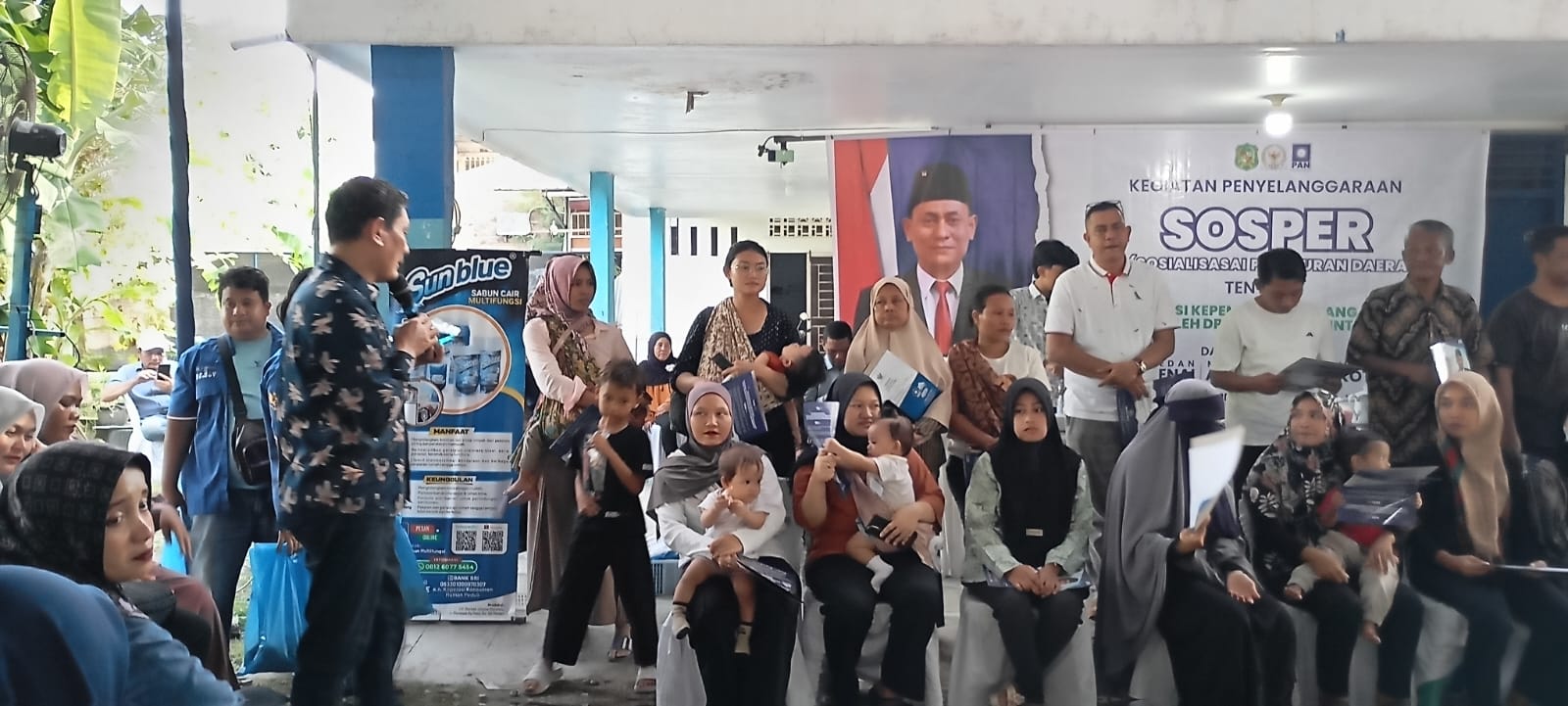 Sebelumnya, sosper juga diselingi dengan penjelasan dan atraksi produk sabun Sunblue Multifungsi dan Program Sembako Bayar Tunda. Produk dan program tersebut dibuat dan digagas khusus oleh Edi Saputra, yang hasil usahanya juga disisihkan untuk kegiatan keagamaan dan sosial kemasyarakatan.(SB/Husni Lubis)