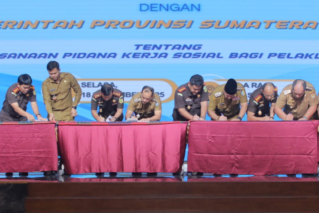 sentralberita|Medan~ Provinsi Sumatera Utara resmi menjadi provinsi ketiga di Indonesia yang melaksanakan Perjanjian Kerja Sama (PKS) mengenai Pelaksanaan Pidana Kerja Sosial bagi pelaku tindak pidana. Kebijakan ini menjadi langkah strategis dalam memperkuat implementasi restorative justice (RJ) di tingkat daerah, setelah sebelumnya diterapkan di Jawa Timur dan Jawa Barat. Penandatanganan PKS berlangsung di Aula Raja Inal Siregar dan dihadiri seluruh bupati/wali kota se-Sumut, termasuk Kabupaten Asahan.