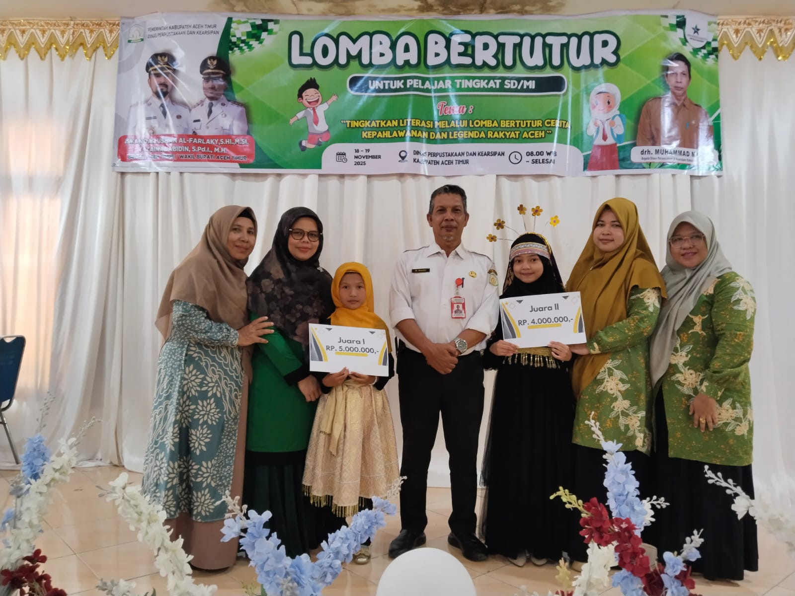 sentralberita|Aceh Timur ~ Kegiatan lomba bertutur tingkat Sekolah Dasar (SD), Madrasah Ibtidaiyah (MI) yang diselenggarakan oleh Dinas Perpustakaan dan Kearsipan Aceh Timur, yang berlangsung selama dua hari, selasa dan rabu 19/11/25.