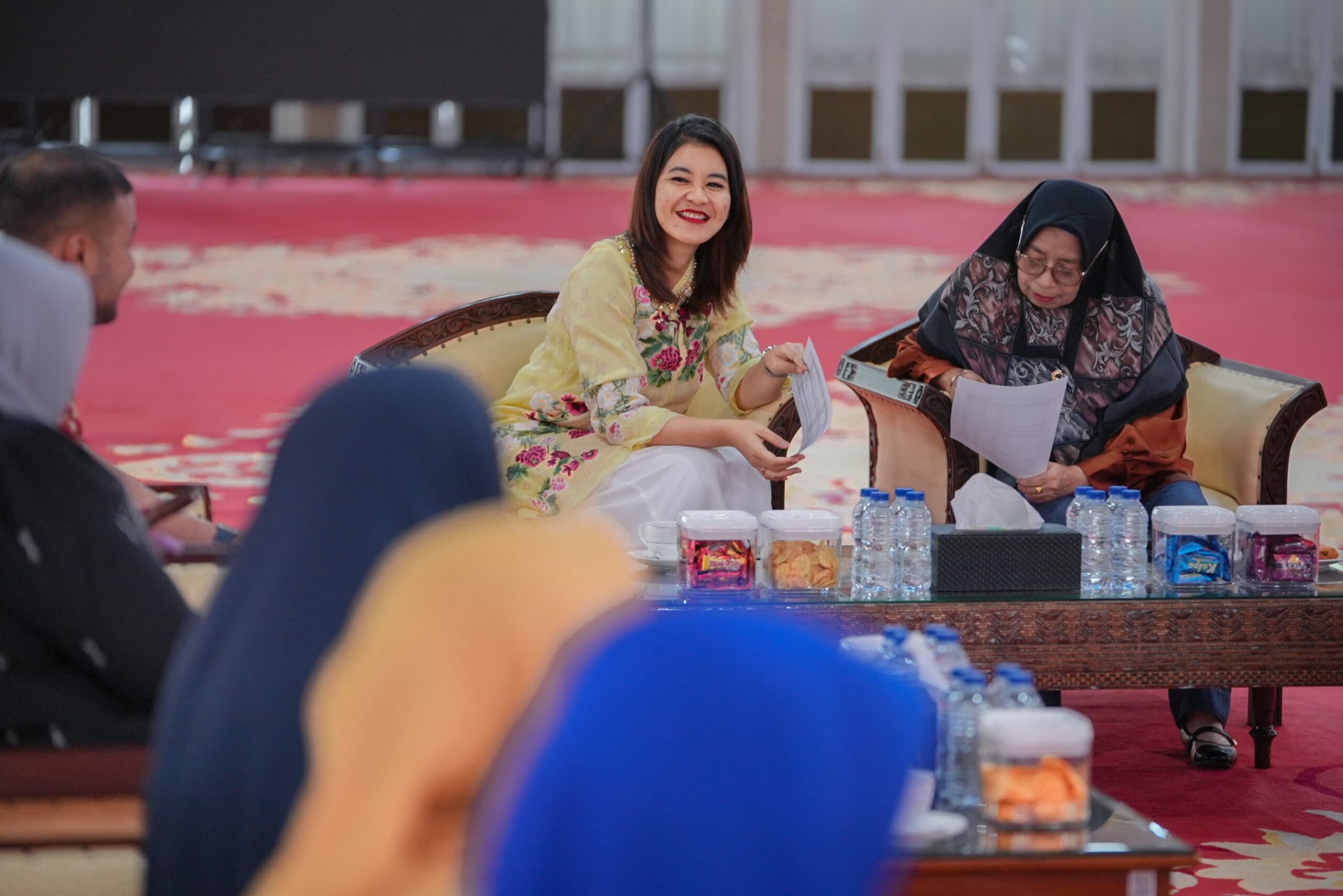 Ketua TP PKK Sumut Kahiyang Ayu menegaskan dukungan penuh PKK terhadap seluruh agenda perayaan, setelah mendengarkan paparan Penjabat (Pj) Ketua DWP Sumut Evi Sulaiman, pada pertemuan bersama pengurus DWP dan PKK Sumut, di Aula Tengku Rizal Nurdin, Jalan Sudirman Nomor 41 Medan, Jumat (21/11/2025).