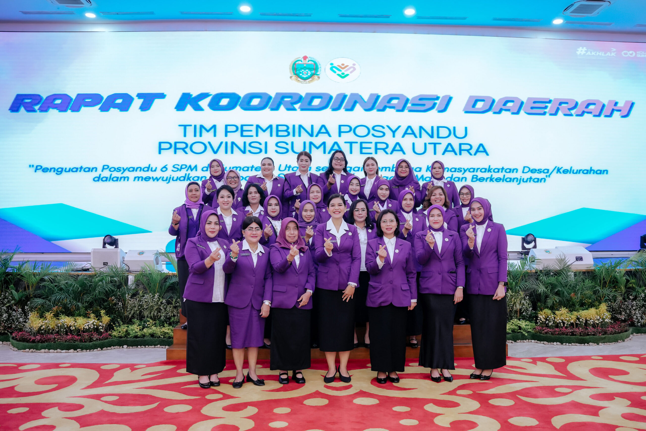 Rapat koordinasi tersebut turut dihadiri Tim Pembina Posyandu Sumut Titiek Sugiharti, kepala dinas terkait kabupaten/kota, serta seluruh pengurus Posyandu se-Sumut.