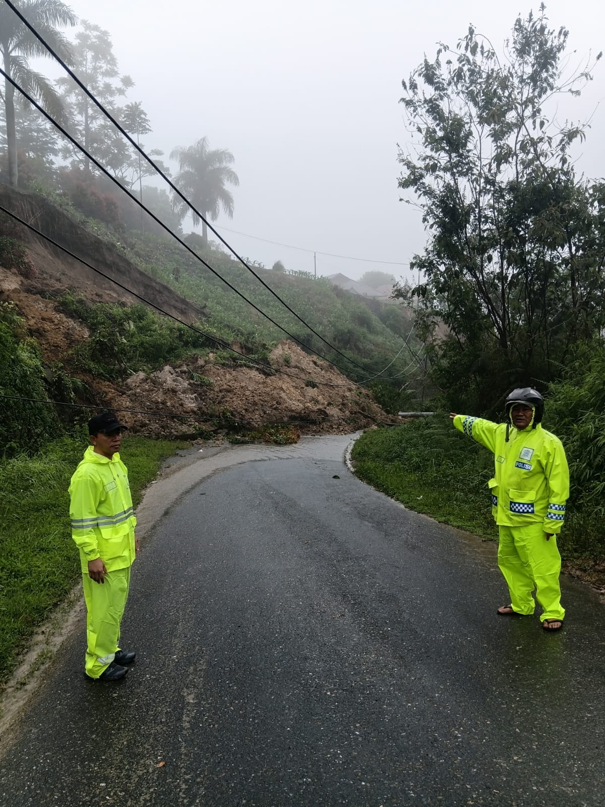 Kapolres Pakpak Bharat AKBP Pebriandi Haloho S.H., S.I.K., M.Si melalui Wakapolres Kompol Donris E. Pasaribu S.H yang di wakili oleh Kasat Reskrim Iptu Pernandos T. Manik S.H selaku Tim III bersama personil melakukan Pengaturan arus lalin dan Pengamanan di titik lokasi Longsor jalan dari Desa Salak Kecamatan Salak menuju Desa Singgabur Kecamatan STTU Julu.