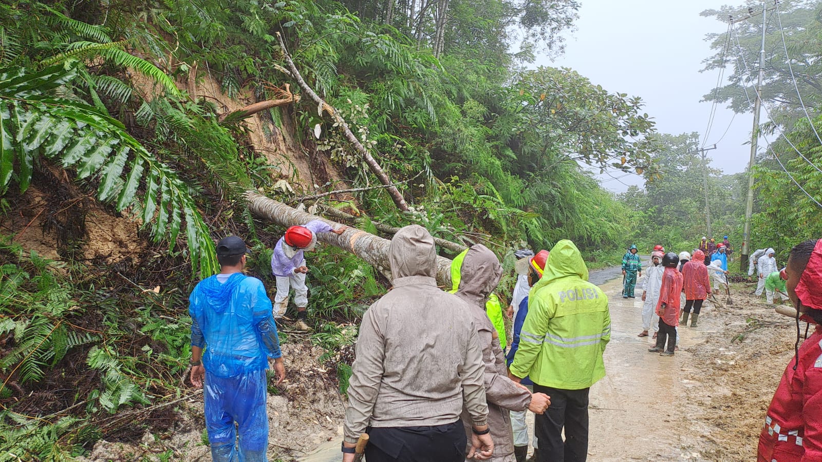 Kedatangan Personil Polres Pakpak dan di bantu masyarakat sekitar Berhasil membersihkan area terdampak Longsor material tanah dan pohon tumbang sehingga sekarang arus Lalu lintas di TKP bisa di lalui kenderaan baik roda 2, 4 dan lebih.