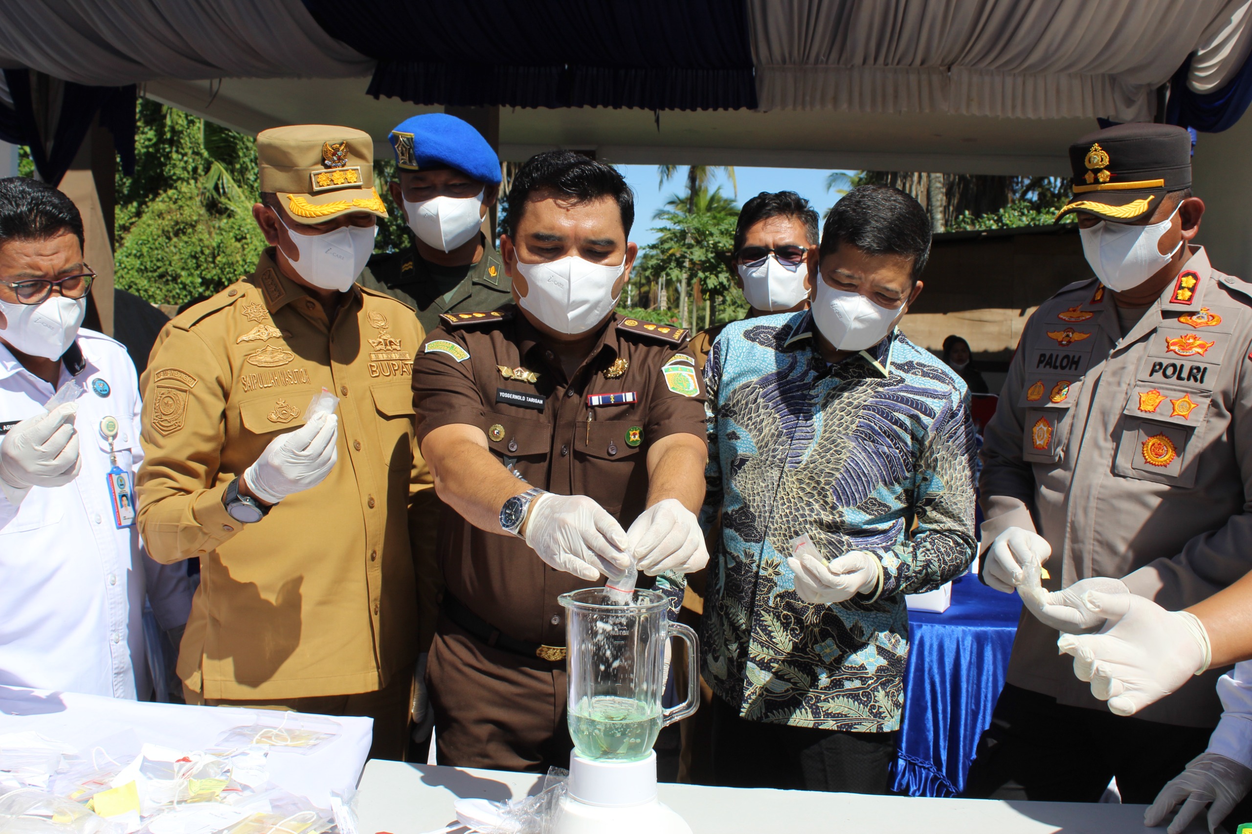 Kegiatan pemusnahan tersebut dipimpin langsung oleh Plt. Kepala Kejaksaan Negeri Mandailing Natal Yos Arnold Tarigan S.H,. M.H. didampingi oleh Kepala Seksi Pemulihan Aset dan Pengelolaan Barang Bukti, Hadi Nur, S.H., M.H., Kepala Seksi Intelijen, Jupri Wandy Banjarnhaor, S.H., M.H. Kepala Seksi Tindak Pidana Umum, Bapak Gilbeth Sitindaon, S.H., M.H., Kepala Seksi Tindak Pidana Khusus, Herianto, S.H., M.H., Kasubag Pembinaan, Bapak Irzan Hafiandy, S.H., M.H., dan turut disaksikan oleh Bupati Mandailing Natal, H. Saipullah Nasution, S.H, M.M., Kapolres Mandailing Natal, Arie Sofandi Paloh, S.H., S.I.K, Ketua DPRD Kabupaten Mandailing Natal, H. Erwin Efendi Lubis, S.H Ketua Pengadilan Negeri Mandailing Natal, Riswan Herafiansyah, S.H., M.H., Perwira Penghubung Kodim, Mayor Inf, Takbir Saputra Dahilu, Plt. Kepala BNN Mandailing Natal,Samsul Arifin, S.E., M.E., Perwakilan Dandempom, Pertu. Sugianto, Perwakilan Kalapas IIB Panyabungan,Andika Pratama, S. Tr. Pas.