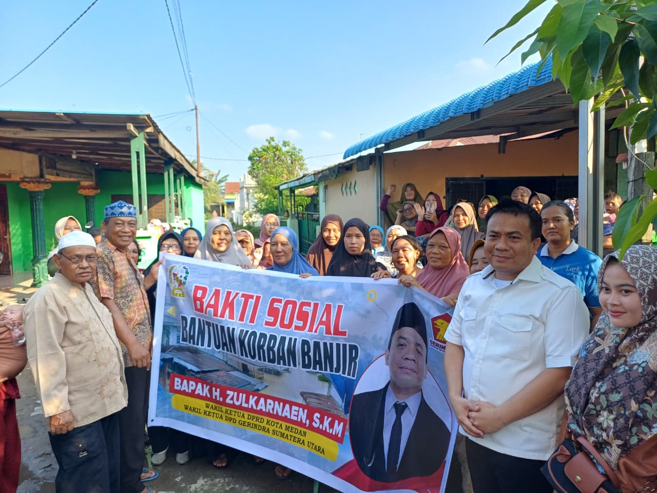 sentralberita|Medan~Wakil Ketua DPRD Kota Medan dari Fraksi Partai Gerindra, H. Zulkarnaen S.K.M, menyerahkan bantuan bahan pangan kepada warga Kota Medan yang terdampak banjir. Bantuan tersebut diberikan Zulkarnaen kepada ratusan warga di tiga lokasi pada Senin (1/12/2025).