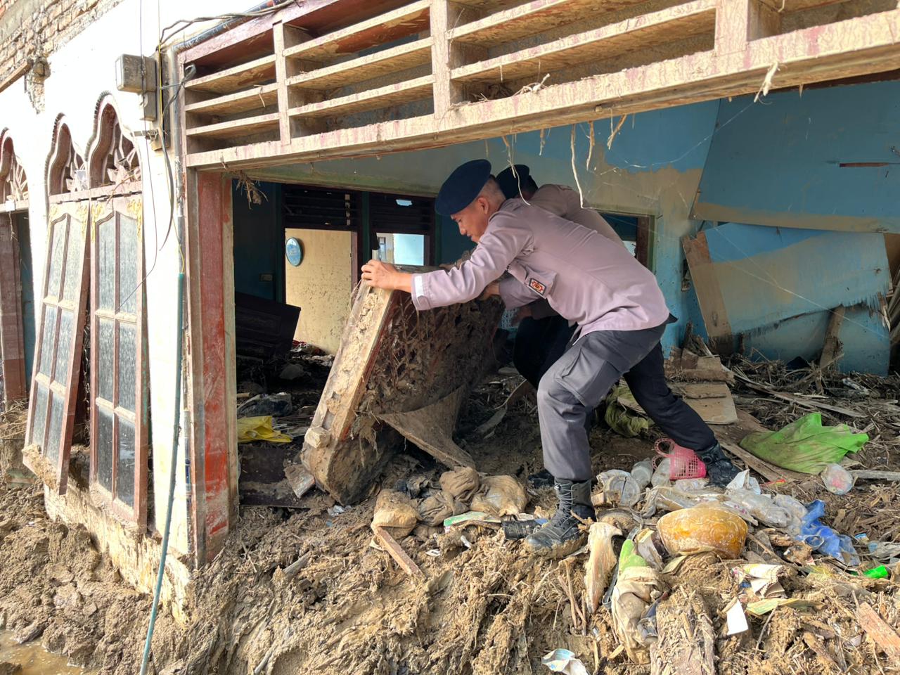 Selain pembersihan sekolah, Satbrimob Polda Sumut juga melakukan kegiatan kemanusiaan berskala lebih luas di wilayah yang sama. Di bawah pimpinan Danki 2 Batalyon C, Iptu Januar Fazhari, S.H., personel bersama organisasi masyarakat setempat melakukan pembersihan rumah-rumah warga serta fasilitas ibadah, termasuk masjid yang sempat tertimbun lumpur dan puing kayu.