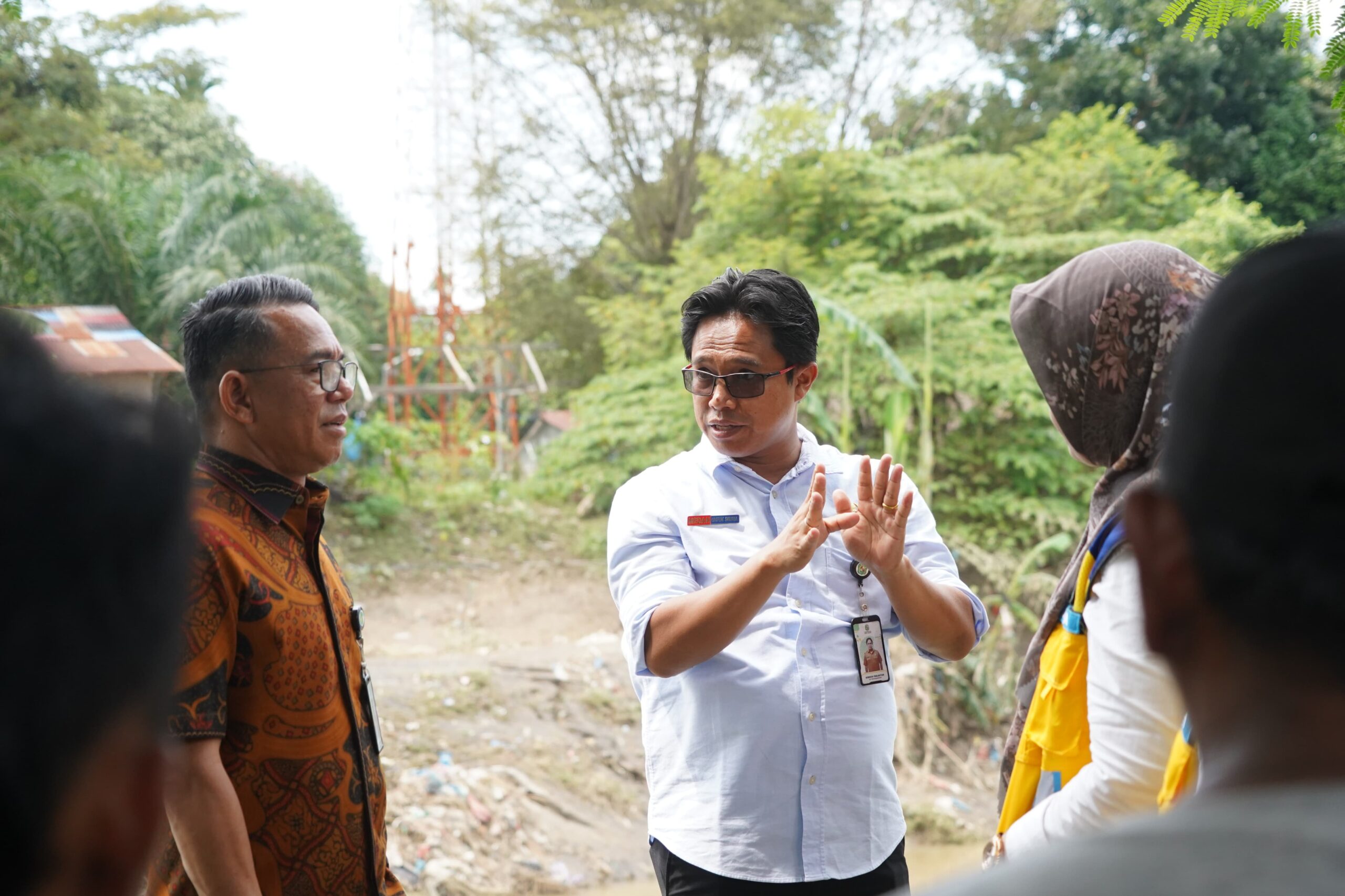 sentralberita | Medan ~ Mengetahui adanya informasi pinggiran Sungai Deli yang tergerus akibat luapan air saat terjadi banjir yang lalu, Wakil Wali Kota Medan H Zakiyuddin Harahap meninjau pinggiran sungai Deli yang berada di jalan KL Yos Sudarso, KM 13 persisnya di belakang Komplek Bea Cukai, Kamis (4/12/25).