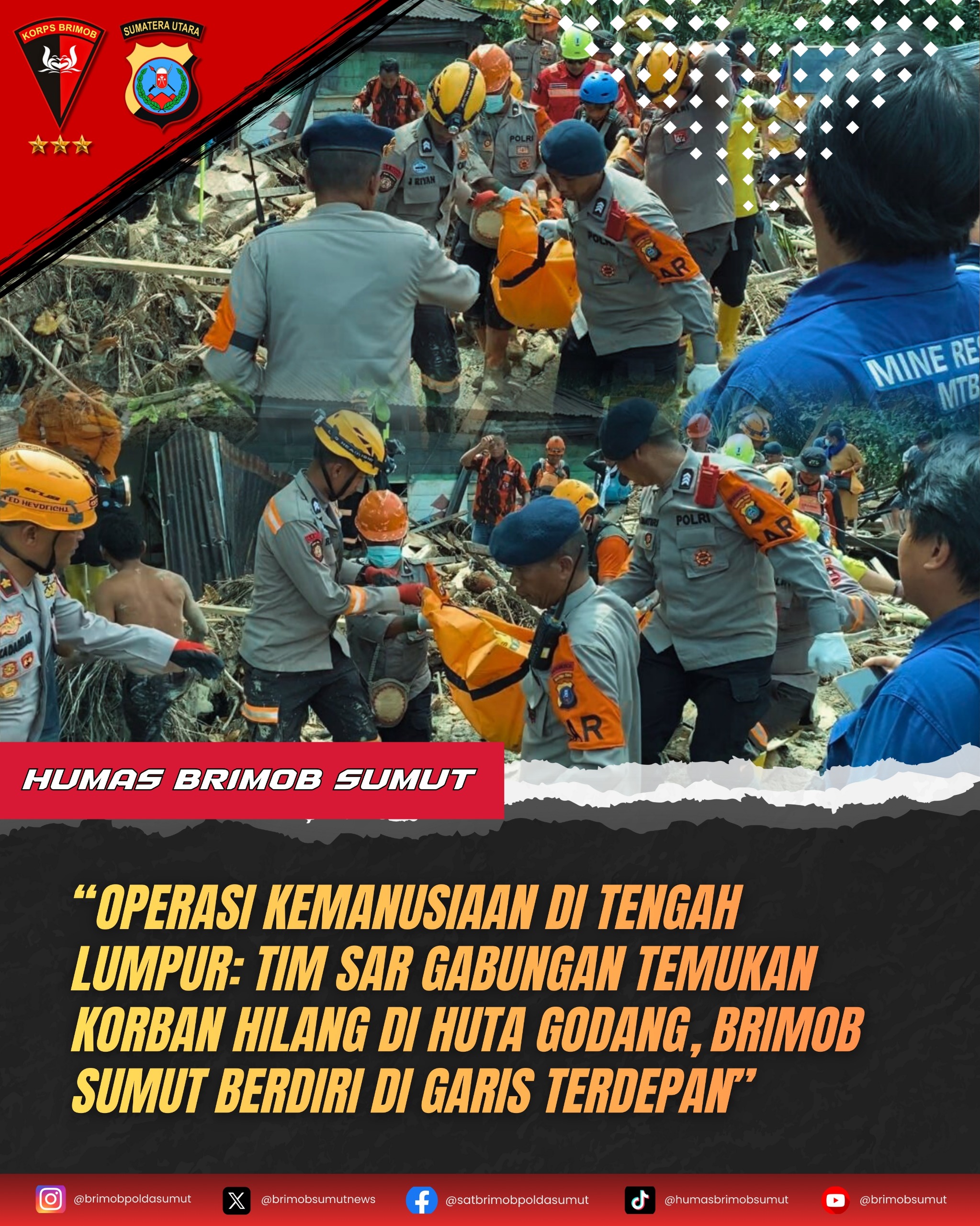 Brimob Sumut dan seluruh unsur SAR berdiri di garda terdepan melindungi, melayani, dan memastikan tak ada satu pun korban yang terabaikan.(01/red)