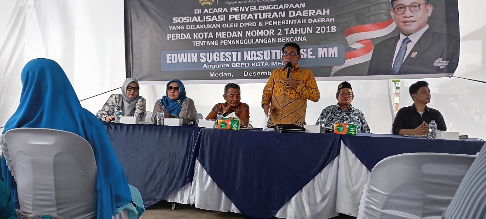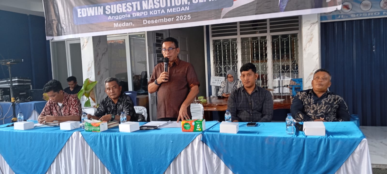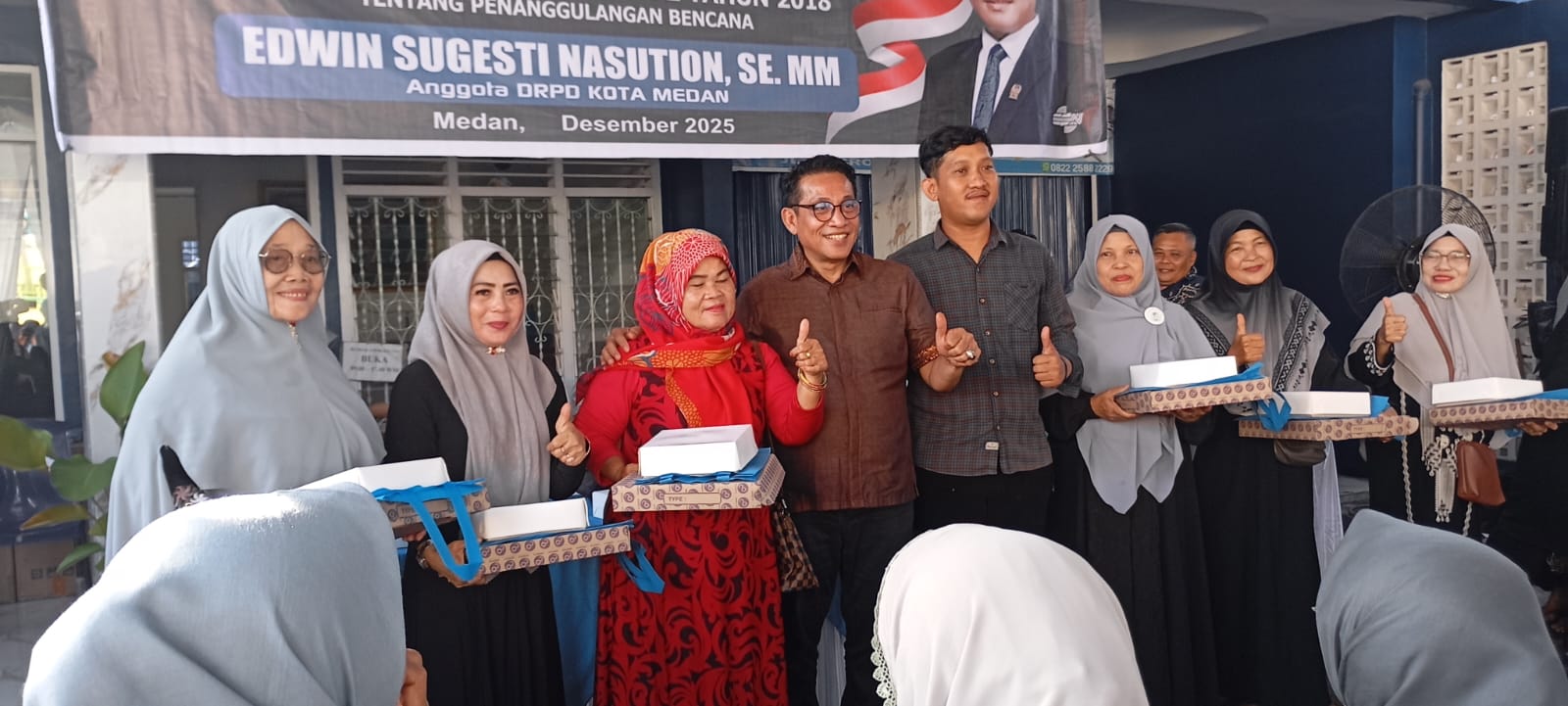 sentralberita|Medan~Anggota DPRD Medan, Edwin Sugesti Nasution, SE.MM melaksanakan Sosialisasi Perda Nomor 2 Tahun 2018 tentang Penanggulangan Bencana Kota Medan, Minggu (7/12//2025) pagi dan siang di dua titik, Jalan Pimpinan Gg. Delima Kelurahan Sei Kerah Hilir I dan Jalan Sosro Link 8 Kelurahan Bantan Kecamatan Medan Tembung.