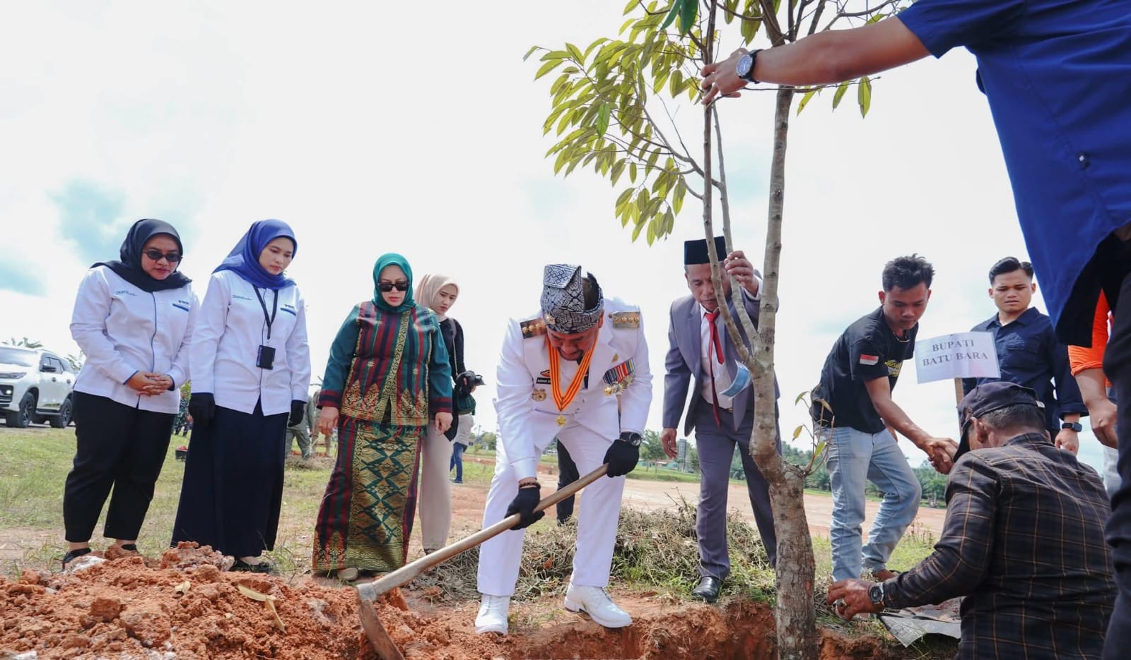 Momentum HUT ke-19 Batu Bara, Bupati Lakukan Penanaman Pohon di Kantor Bupati