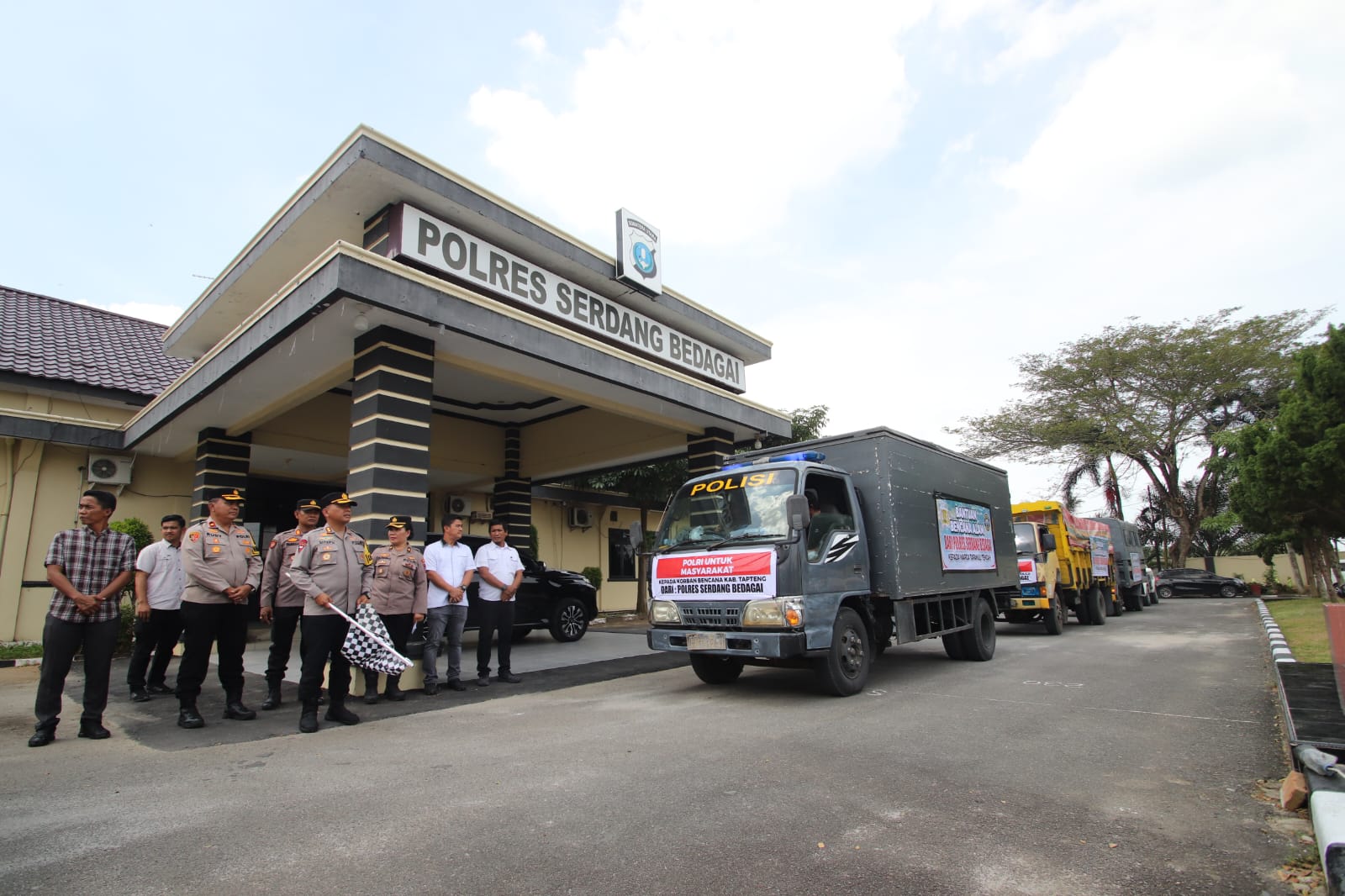 Pemberangkatan bantuan dilakukan menggunakan tiga unit truk pengangkut, masing-masing menuju Kabupaten Langkat, Kota Sibolga, dan Kabupaten Tapanuli Tengah. Kapolres berharap seluruh proses distribusi berjalan lancar hingga tiba di lokasi tanpa hambatan.