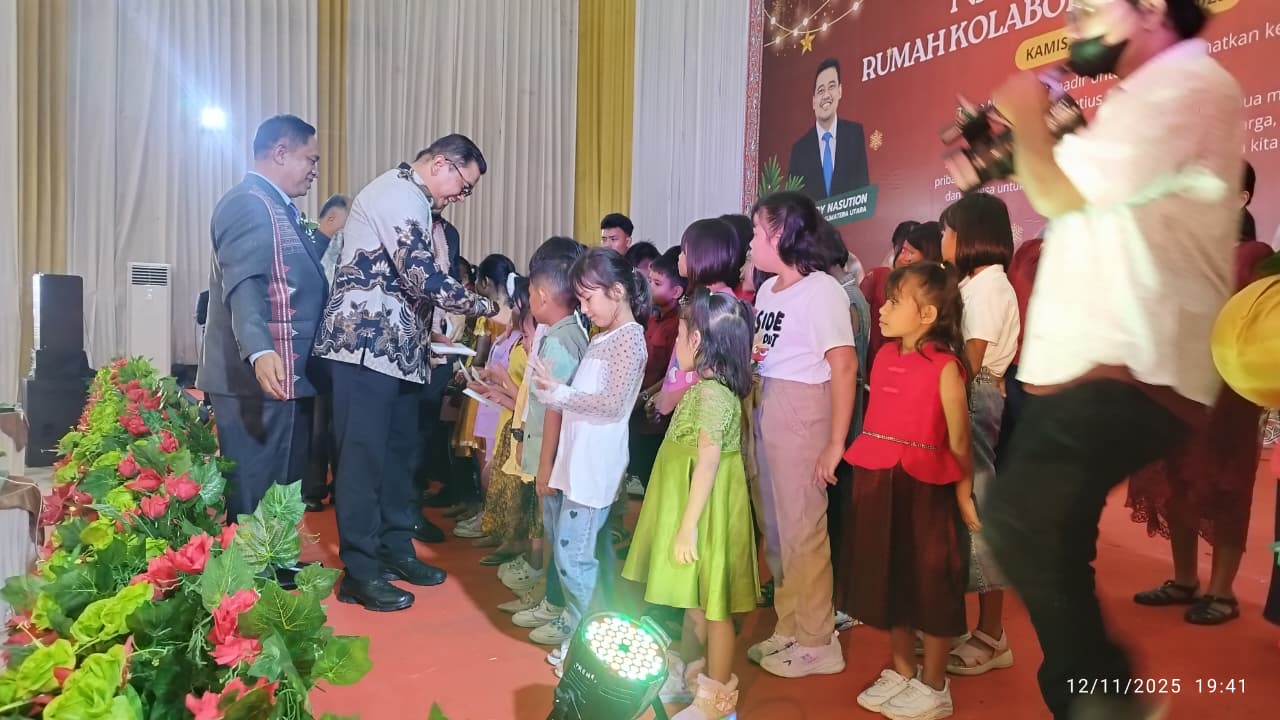sentralberita|Medan ~ Gubernur Sumatera Utara Muhammad Bobby Afif Nasution mengajak masyarakat memperkuat solidaritas dan menebarkan damai Natal, terutama di tengah bencana banjir dan longsor yang melanda sejumlah wilayah di Sumut dalam beberapa pekan terakhir. Ajakan itu disampaikan melalui sambutan resmi yang dibacakan Kepala BPSDM Sumut, Dr. Agustinus Panjaitan, pada Perayaan Natal Rumah Kolaborasi Bobby Nasution (RKBN) di Gedung PRSU, Medan, Kamis (11/12/2025).