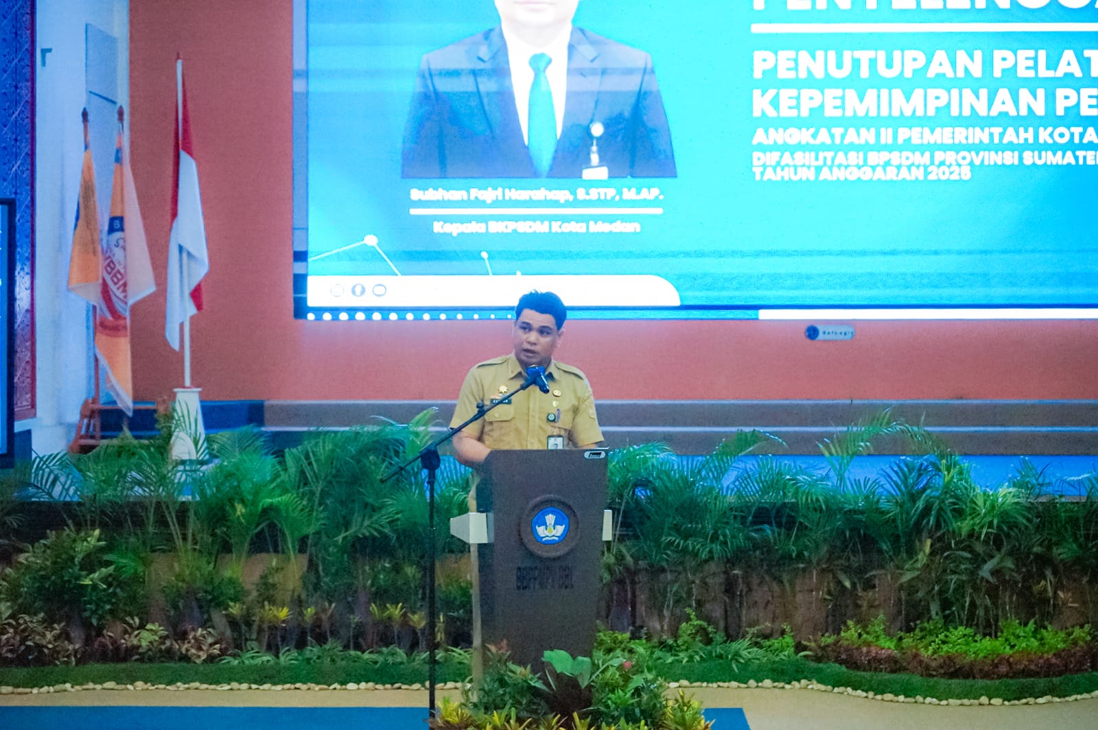 sentralberita | Medan ~ Secara resmi Wali Kota Medan, Rico Tri Putra Bayu Waas menutup Pelatihan Kepemimpinan Pengawas Angkatan II di lingkungan Pemko Medan yang difasilitasi BPSDM Sumut TA 2025, di Gedung Aula BBPPMVP-BBL Medan, jalan Setia Budi, Kec. Medan Helvetia, Senin (15/12/2025).