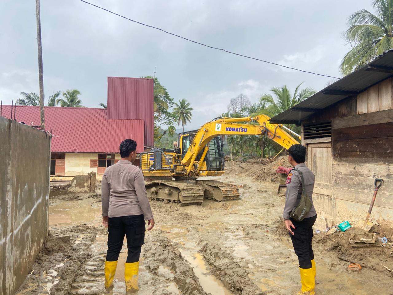 Dalam operasi kemanusiaan ini, personel Polres Labuhanbatu Selatan di bawah kepemimpinan Kabag Log AKP Mulyadi, S.H., mendirikan tenda pleton polisi, tenda pantau BPBD, serta dapur umum untuk mendukung logistik dan kebutuhan personel di lokasi bencana. Pembersihan dilakukan secara intensif menggunakan dua unit alat berat jenis beko, dibantu personel yang bekerja manual dengan cangkul, sekop, dan angkong.