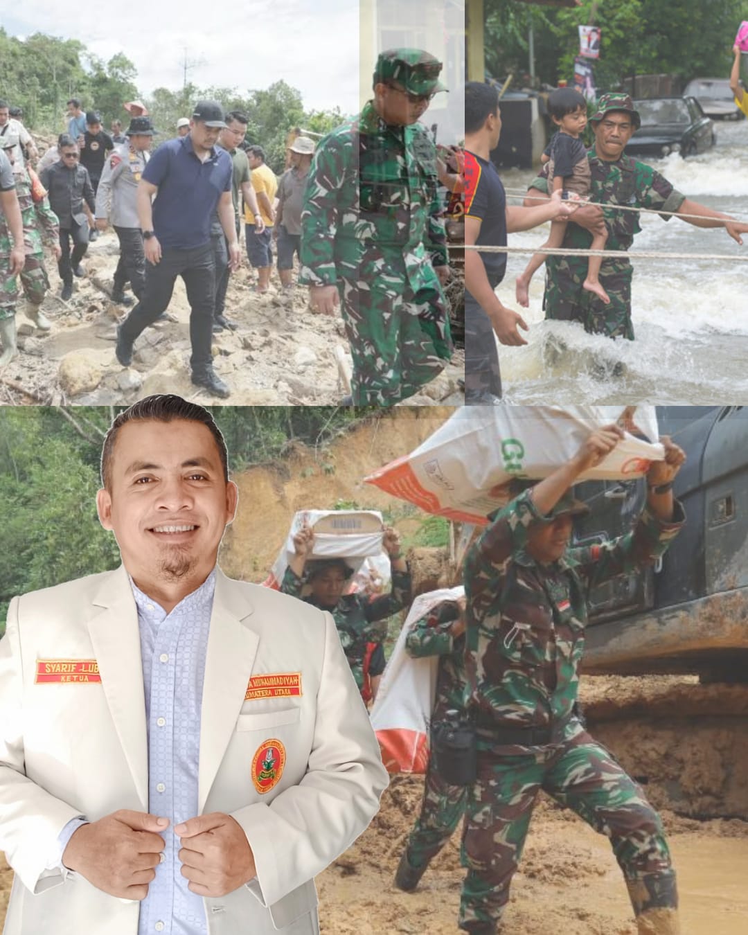 sentralberita|Medan~Ketua Pemuda Muhammadiyah Sumatera Utara, Muhammad Syarif Lubis, menegaskan apresiasi dan dukungan penuh terhadap peran aktif Tentara Nasional Indonesia (TNI) dan Kepolisian Negara Republik Indonesia (Polri) dalam penanggulangan bencana banjir bandang dan longsor yang melanda sejumlah wilayah di Sumatera.