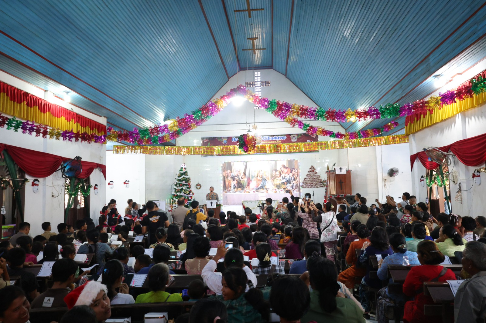 “Kami hadir bukan hanya sebagai aparat negara, tetapi sebagai saudara. Polri datang untuk berbagi rasa, memberikan semangat, dan membawa sukacita Natal kepada Bapak dan Ibu semua. Tetaplah kuat dan dekatkan diri kepada Tuhan, karena Dia tidak pernah meninggalkan kita,” tutur Kapolda dengan penuh empati.