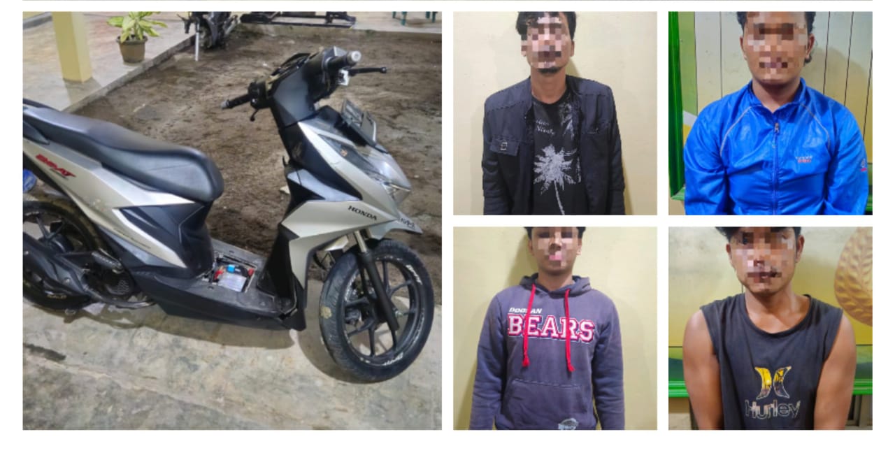 Petugas kemudian melakukan pengembangan dan berhasil menangkap ketiga pelaku lainnya di kediaman masing-masing tanpa perlawanan. Dari tangan para pelaku, polisi turut mengamankan barang bukti berupa satu unit sepeda motor Honda Beat warna silver BK 3998 NAW dan satu unit handphone merek OPPO milik korban.