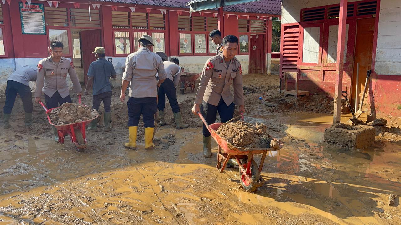 Sekolah Terdampak Bencana Dibersihkan, Polda Sumut Fokus Pulihkan Dunia Pendidikan