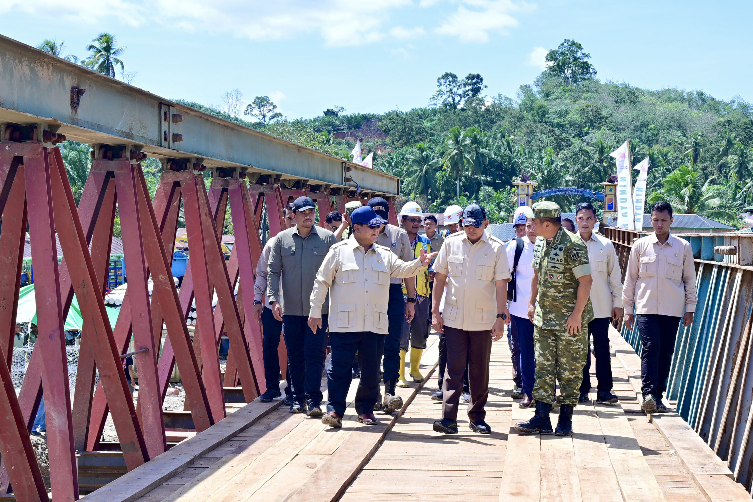 Rabu (31/12/2025), Prabowo melihat langsung proses pembangunan jembatan Bailey yang melintasi Sungai Garoga, sekaligus perbatasan antara Kabupaten Tapanuli Selatan dengan Tapanuli Tengah. Jalan lintas Sumatera (Jalinsum) pantai barat tersebut, beberapa waktu lalu sudah bisa dilewati, dengan pengalihan sementara jalur di samping jembatan yang sedang dibangun.
