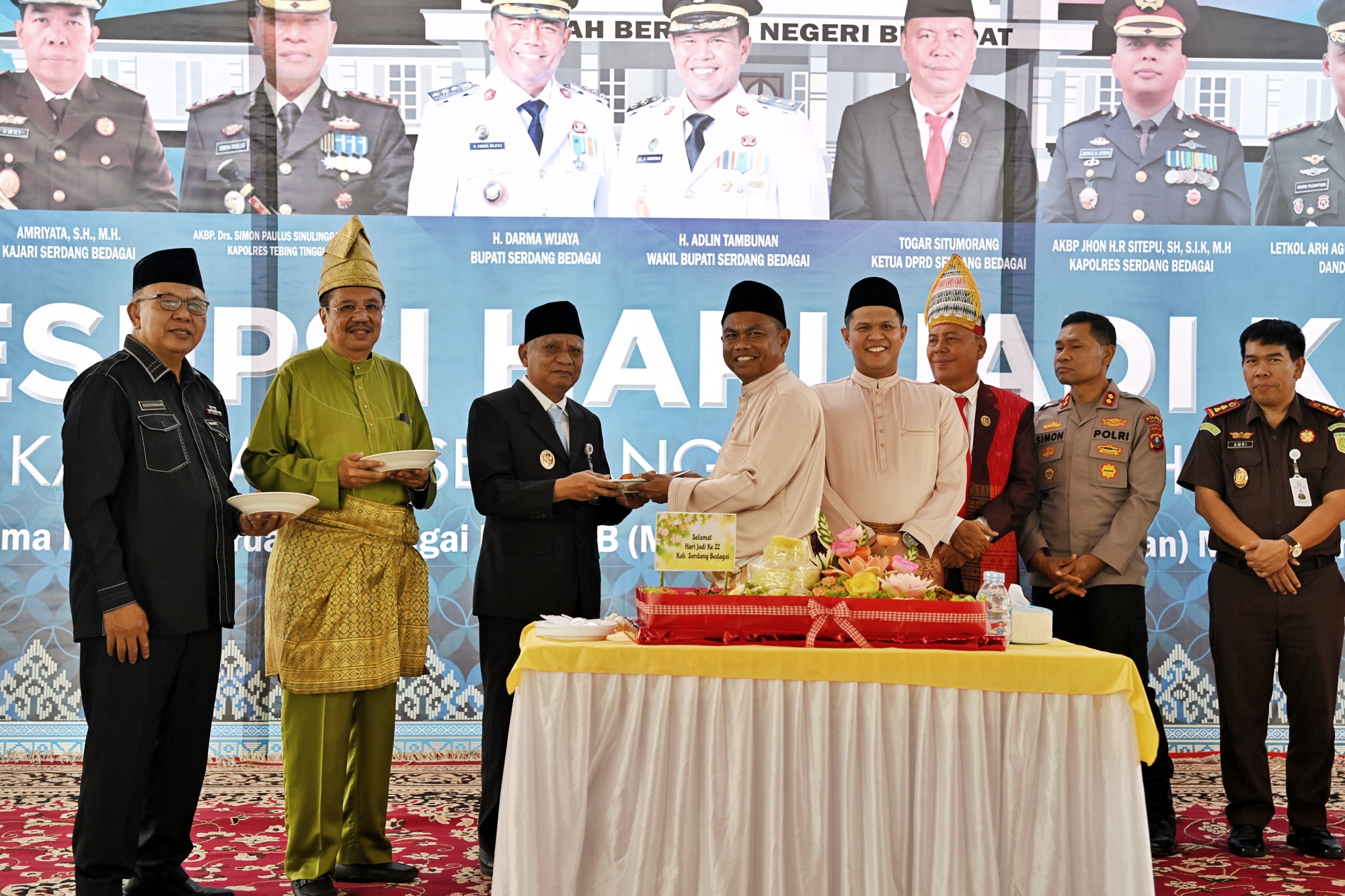 Resepsi perayaan Hari Jadi ke-22 Kabupaten Sergai ini juga ditandai dengan prosesi pemotongan tumpeng bersama tokoh masyarakat, Forkopimda, Wakil Bupati Sergai Adlin Tambunan, anggota DPRD, serta para mantan pejabat yang pernah berjasa membangun Tanah Bertuah Negeri Beradat tersebut. **(01/red)