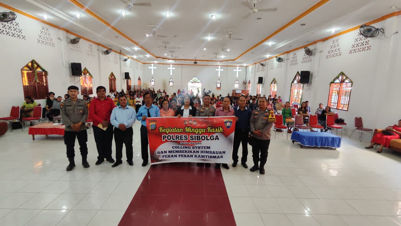 sentralberita | Sibolga ~ Dalam rangka menciptakan dan memelihara situasi Keamanan dan Ketertiban Masyarakat (Kamtibmas) yang aman dan kondusif di wilayah Kota Sibolga, Polres Sibolga melaksanakan kegiatan *Minggu Kasih* dengan menyampaikan himbauan serta pesan-pesan Kamtibmas kepada masyarakat, khususnya jemaat gereja.