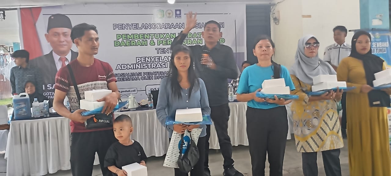Selanjutnya Edi Saputra yang dikenal sebagai wakil rakyat yang konsisten dalam mengurusi berkas Adminduk warga secara gratis tersebut, di akhir paparannya membagikan berkas Adminduk warga yang diurus Tim Rumah Peduli Edi Saputra secara gratis, diantaranya KTP, KK, surat pindah, akte kelahiran hingga akte pernikahan.