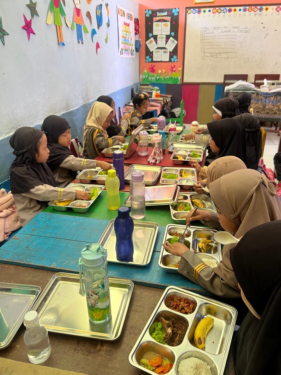 Sejumlah guru mengungkapkan, para siswa terlihat lebih antusias dan bersemangat saat jam makan karena mendapatkan menu sehat secara gratis.