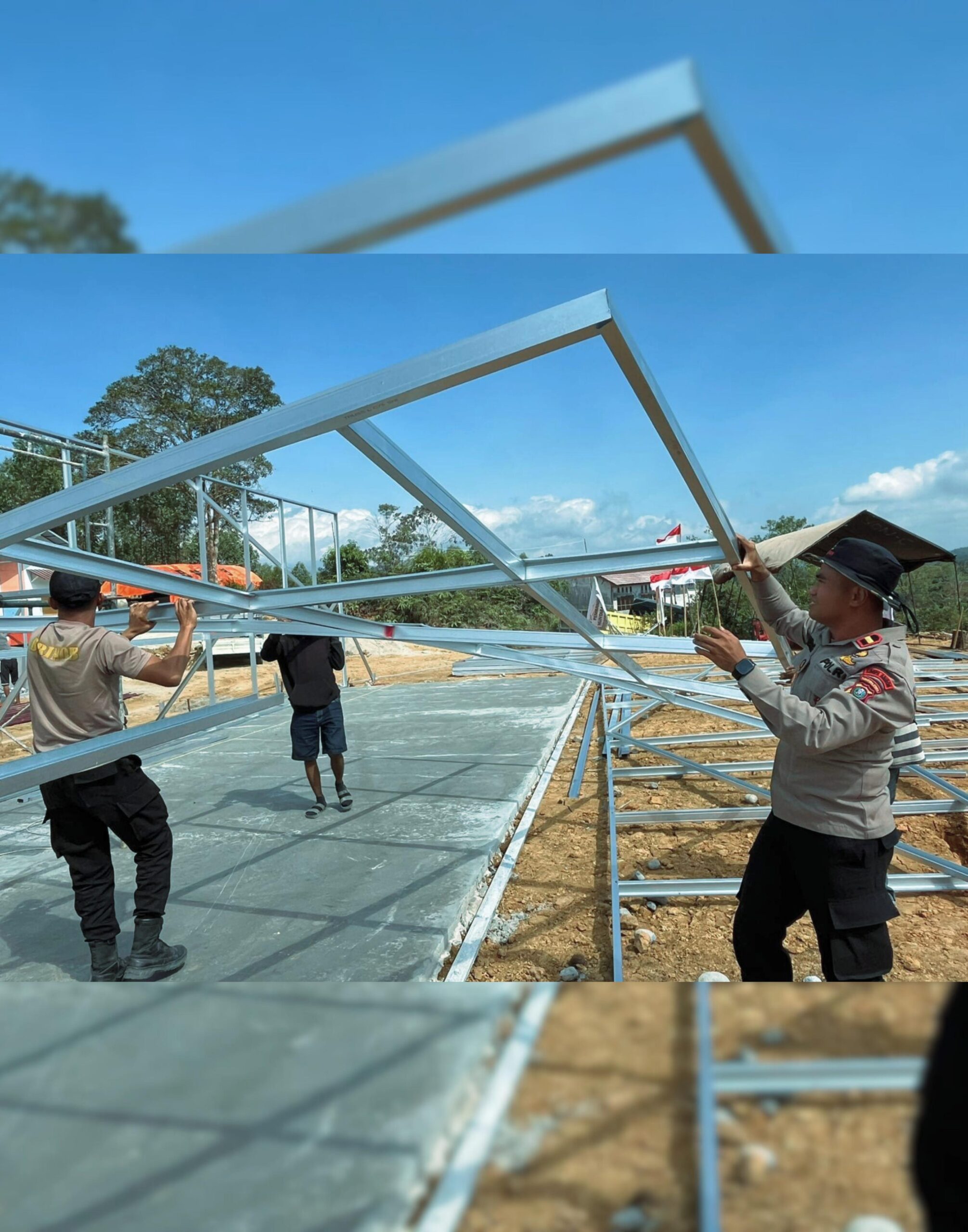 Dalam kesempatan tersebut, personel Brimob dan TNI turut membantu percepatan pembangunan Huntara. Hingga saat ini, sebanyak 12 unit Huntara telah berdiri di atas lahan seluas kurang lebih dua hektare.