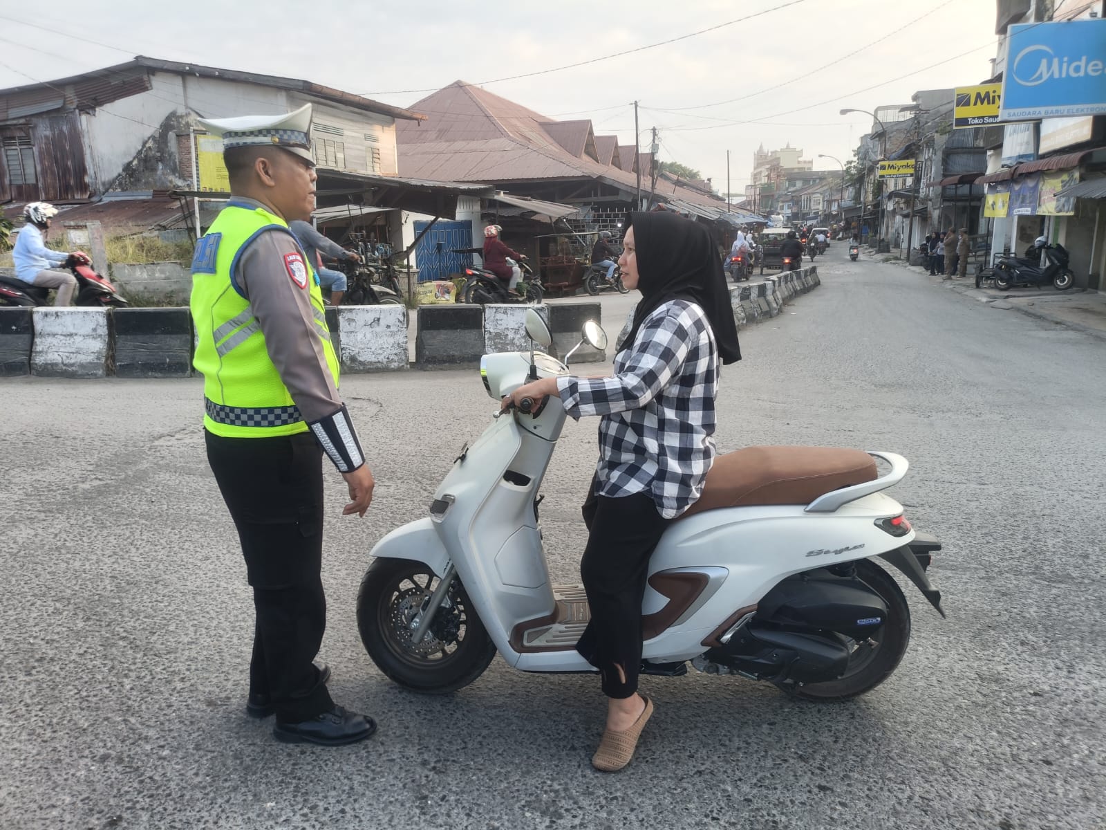 Petugas memberikan teguran simpatik serta himbauan kepada pengendara sepeda motor. Fokus utama adalah pelanggaran kasat mata yang berisiko tinggi, seperti Pengendara yang tidak menggunakan helm SNI, Berboncengan lebih dari satu orang (bonceng tiga) dan Melawan arus lalu lintas yang dapat membahayakan diri sendiri dan orang lain.