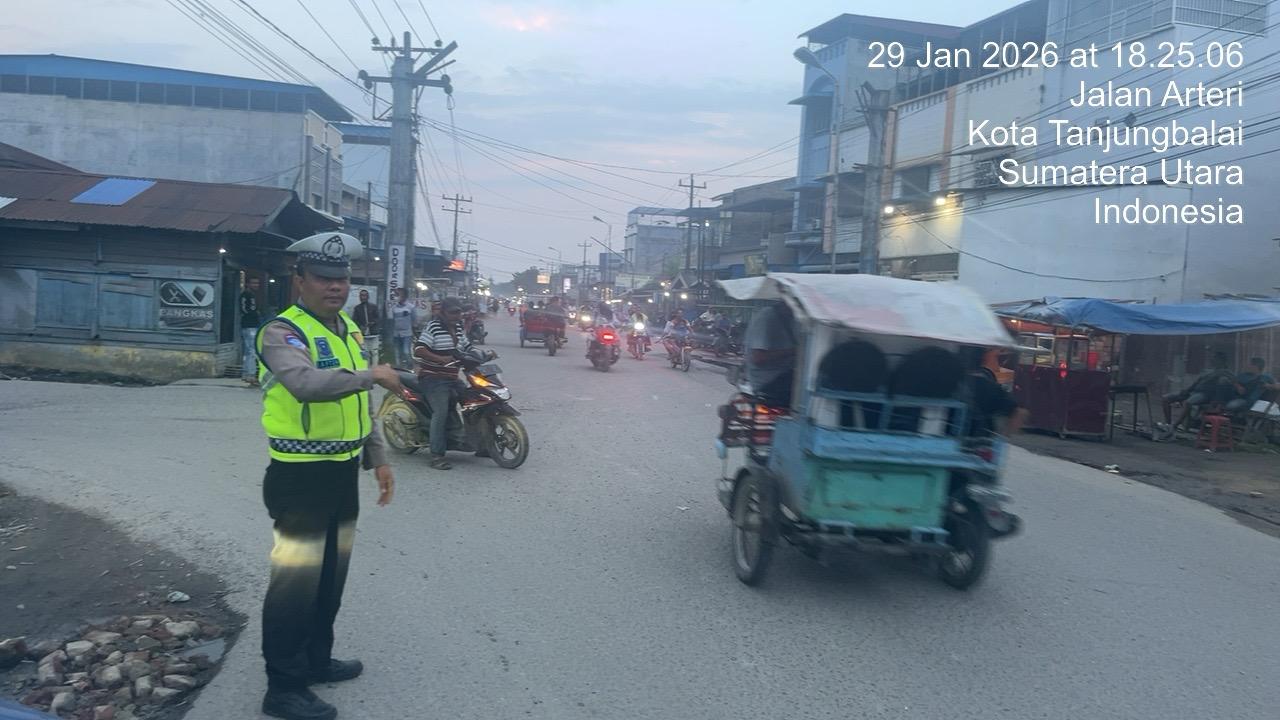 sentralberita | Tj.balai ~ Guna memastikan keamanan dan kenyamanan masyarakat saat beraktivitas di sore hari, Satuan Lalu Lintas (Sat Lantas) Polres Tanjung Balai menggelar patroli rutin di sejumlah titik rawan di wilayah hukum Kota Tanjung Balai, Kamis (29/1).