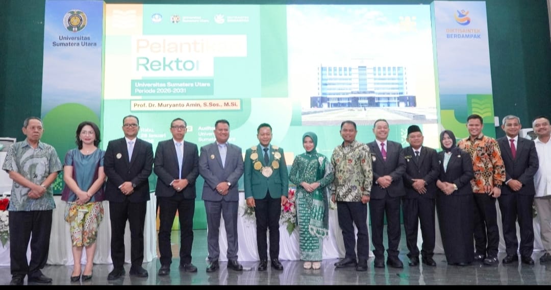 sentralberita I Medan ~ Bupati Langkat H. Syah Afandin, SH yang diwakili Wakil Bupati Langkat Tiorita Br. Surbakti, SH menghadiri prosesi pelantikan Prof. Muryanto Amin sebagai Rektor Universitas Sumatera Utara (USU) periode 2026–2031. Kegiatan tersebut berlangsung di Auditorium Universitas Sumatera Utara, Medan, Rabu (28/1/2026).
