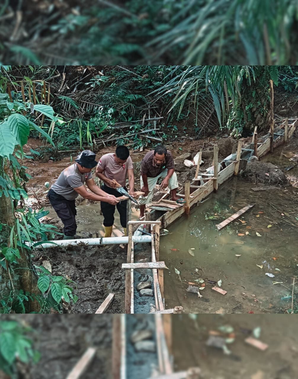 Dengan peralatan sederhana dan semangat gotong royong, personel Brimob bekerja berdampingan bersama warga—membersihkan lumpur, meratakan tanah, memperbaiki parit, hingga menata kembali ruang-ruang kehidupan yang sempat terhenti. Setiap ayunan cangkul dan setiap tetes keringat menjadi simbol pengabdian dan kepedulian tanpa pamrih.
