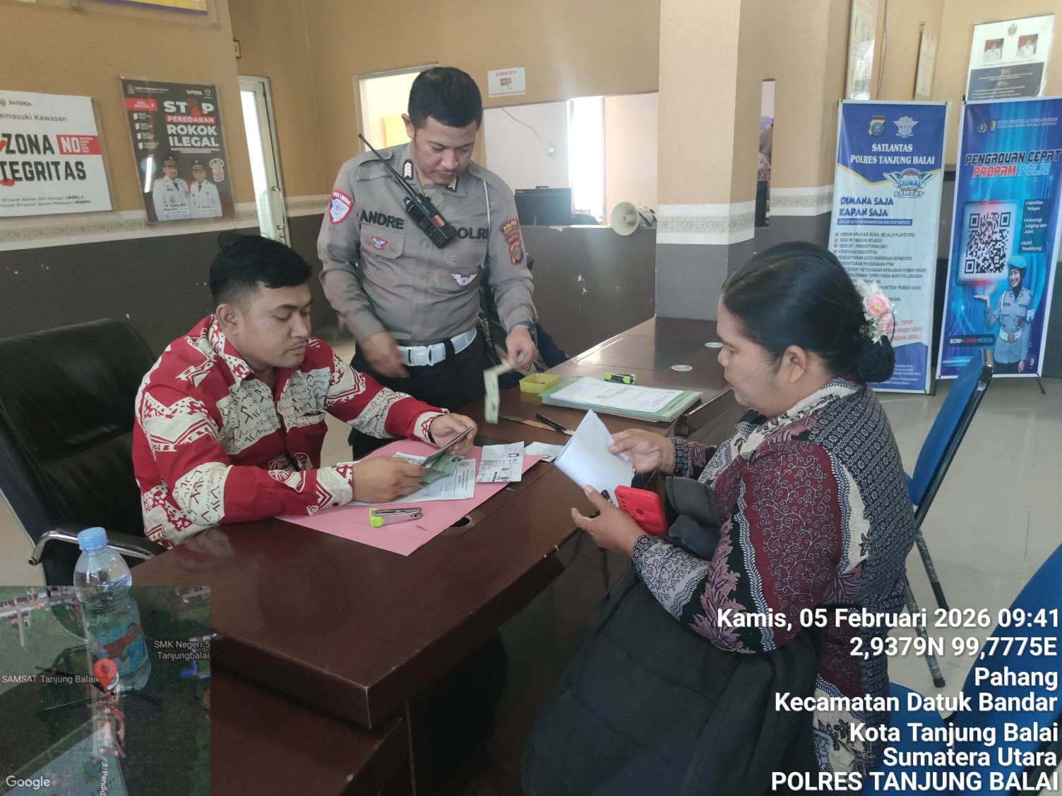 Satlantas Polres Tanjung Balai Hadirkan Program “Polisi Menyapa” di Satpas dan Samsat