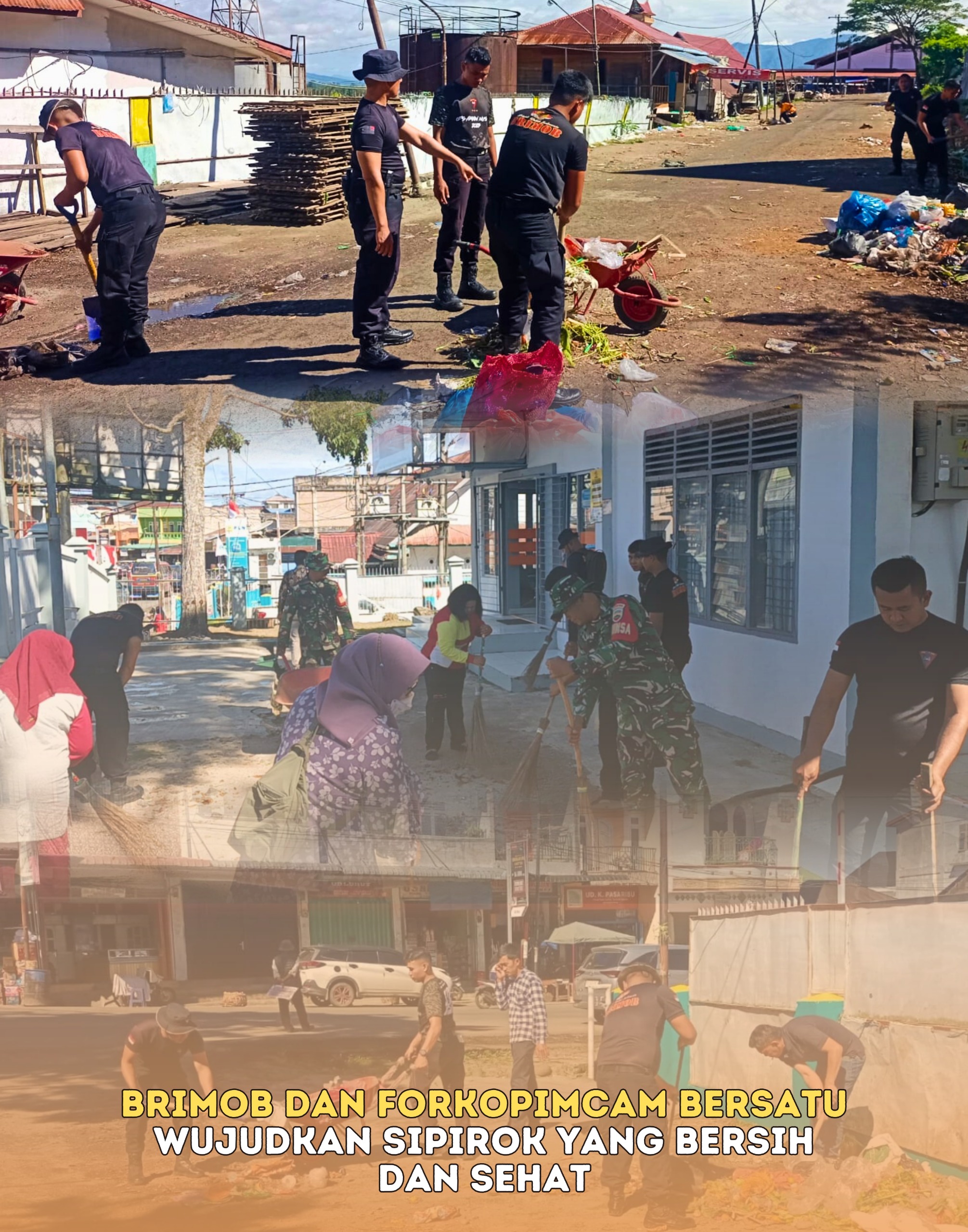 Aksi bersih tersebut dipimpin langsung oleh Wakil Komandan Batalyon C, Kompol Suliadi, S.H., dan diikuti oleh unsur Forkopimcam serta tokoh-tokoh pelayanan masyarakat. Hadir dalam kegiatan ini Camat Sipirok Sahrudin Perwira, S.Sos., M.M., Danki-2 Batalyon C AKP Januar Fazhari, S.H., Danramil Sipirok Kapten Inf Julianto, Kapolsek Sipirok Iptu Aswin Manurung, S.H., para kepala sekolah, serta tenaga kesehatan di Kecamatan Sipirok.
