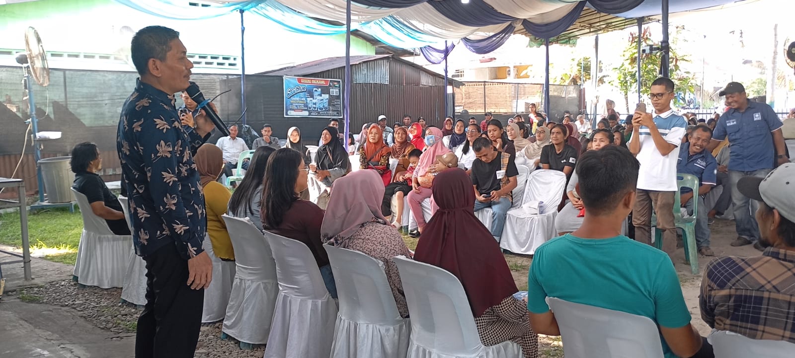 “Jika izin masyarakat yang hadir sekarang, saya mewakili Bapak Ibu sekalian menyampaiakan ucapan terimakasih kepada Bapak Edi Saputra,ujarnya spontan warga tersebut setuju.
