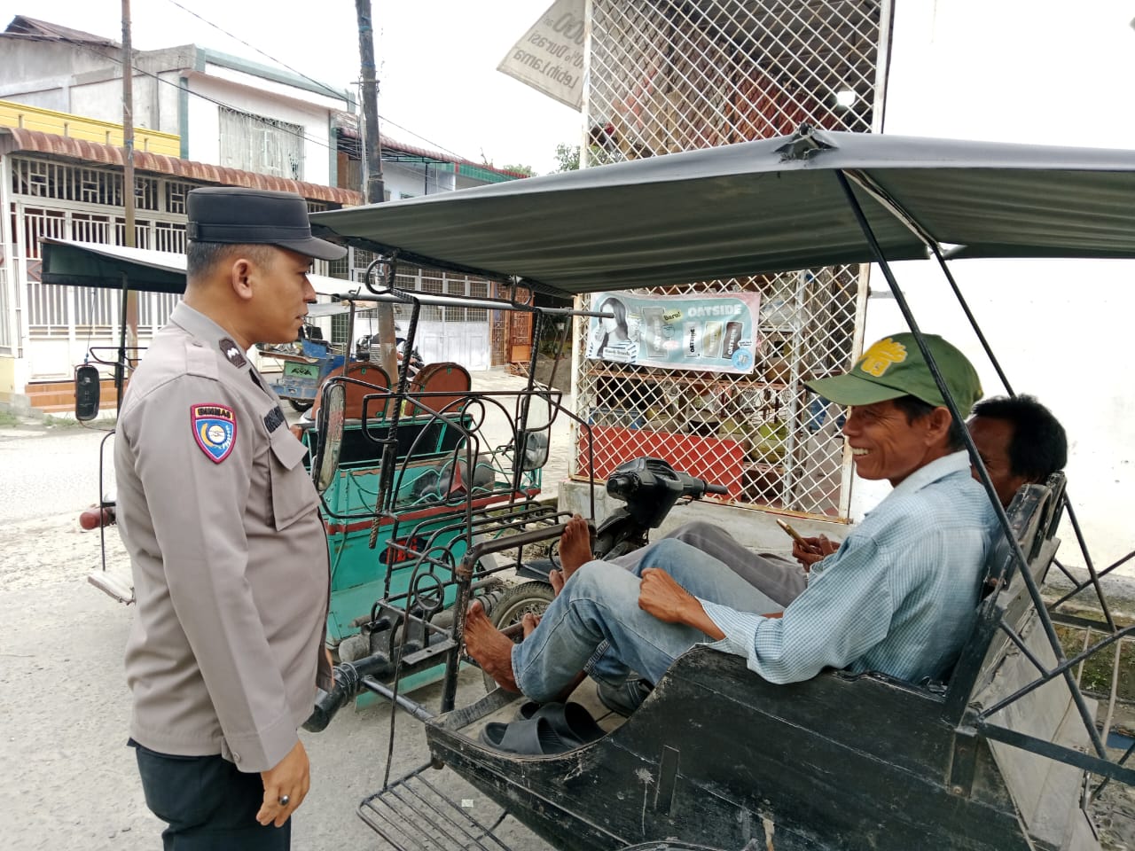 Dalam suasana penuh keakraban, petugas berdialog langsung dengan Bapak Sandi dan sejumlah warga lainnya untuk menyampaikan pesan-pesan keamanan dan ketertiban masyarakat (Kamtibmas).