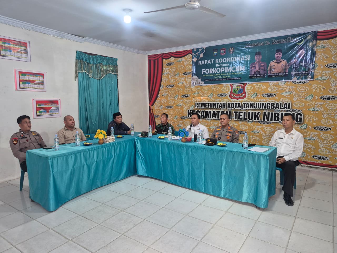 sentralberita|Tanjungbalai~Memastikan ibadah bulan suci Ramadhan 1447 H berjalan khusyuk dan aman, Kapolsek Teluk Nibung dan unsur Forum Komunikasi Pimpinan Kecamatan (Forkopimcam) Teluk Nibung menggelar Rapat Koordinasi (Rakor) di Aula Kantor Camat Teluk Nibung, Rabu (18/2).