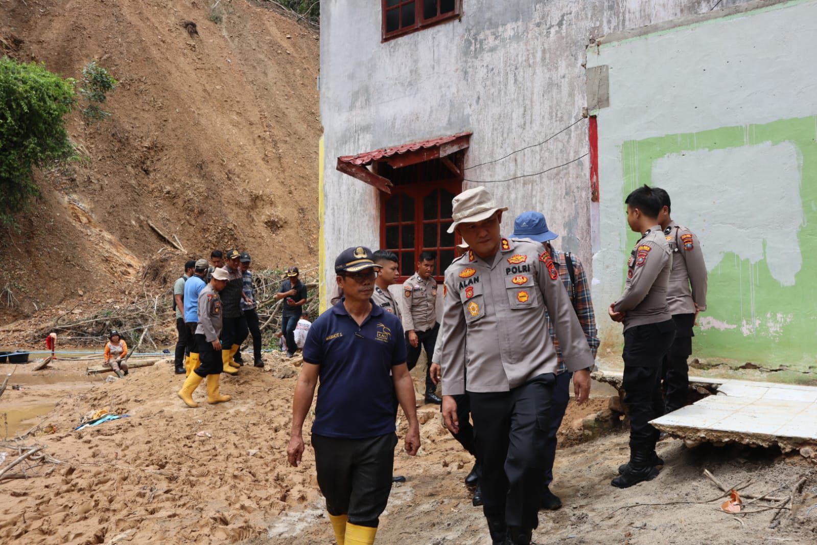 sentralberita|Tapteng~ Pasca bencana alam banjir dan tanah longsor yang melanda wilayah Kecamatan Sitahuis pada 16 Februari lalu, Kapolres Tapanuli Tengah, AKBP Muhammad Alan Haikel, S.K.M., S.I.K., M.I.K., turun langsung meninjau lokasi terdampak sekaligus menyerahkan bantuan sosial kepada warga, Kamis (19/2/2026).