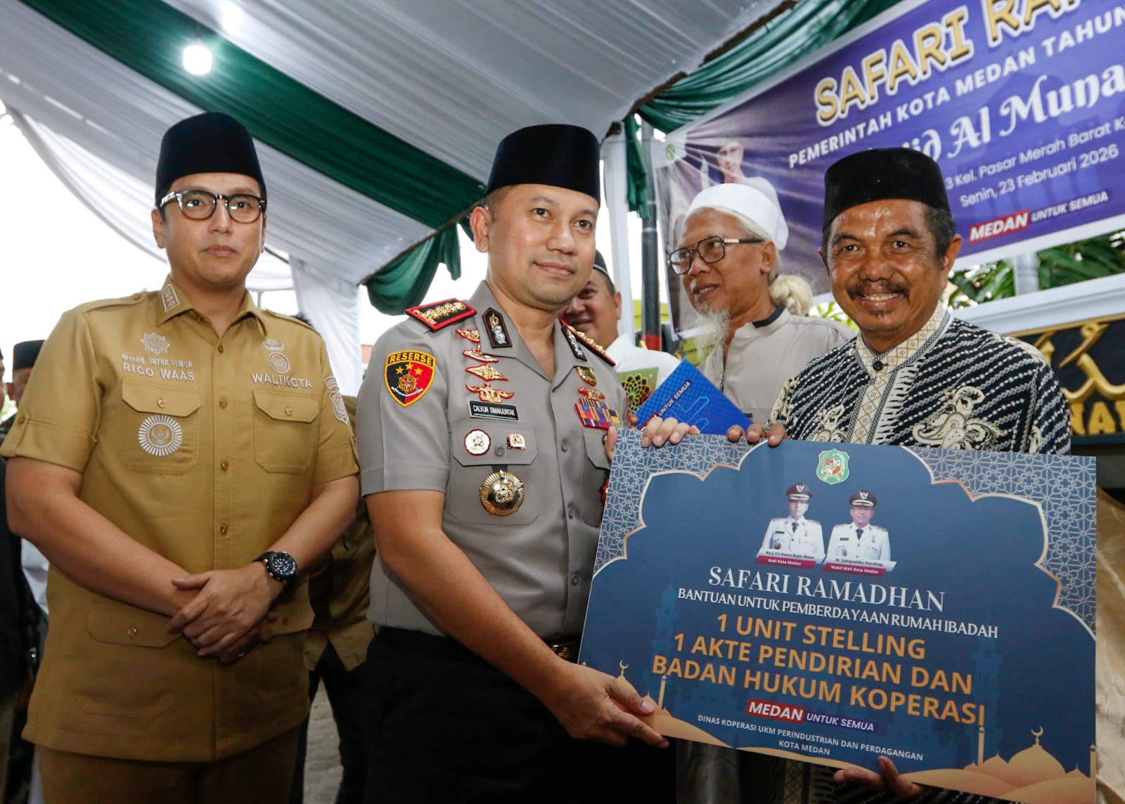 Dalam Safari Ramadan itu, Pemko Medan juga memberikan sejumlah bantuan berupa hibah sebesar Rp. 50 juta untuk renovasi Masjid, bantuan sosial sebesar Rp.10 juta dan paket ramadan, bantuan akte pendirian Koperasi Masjid, bantuan 100 polybag bibit cabai, bantuan satu set tenis meja, satu set buku dan rak buku, serta santunan kepada anak-anak yatim piatu yang diserahkan langsung oleh Wali Kota Medan Rico Waas.