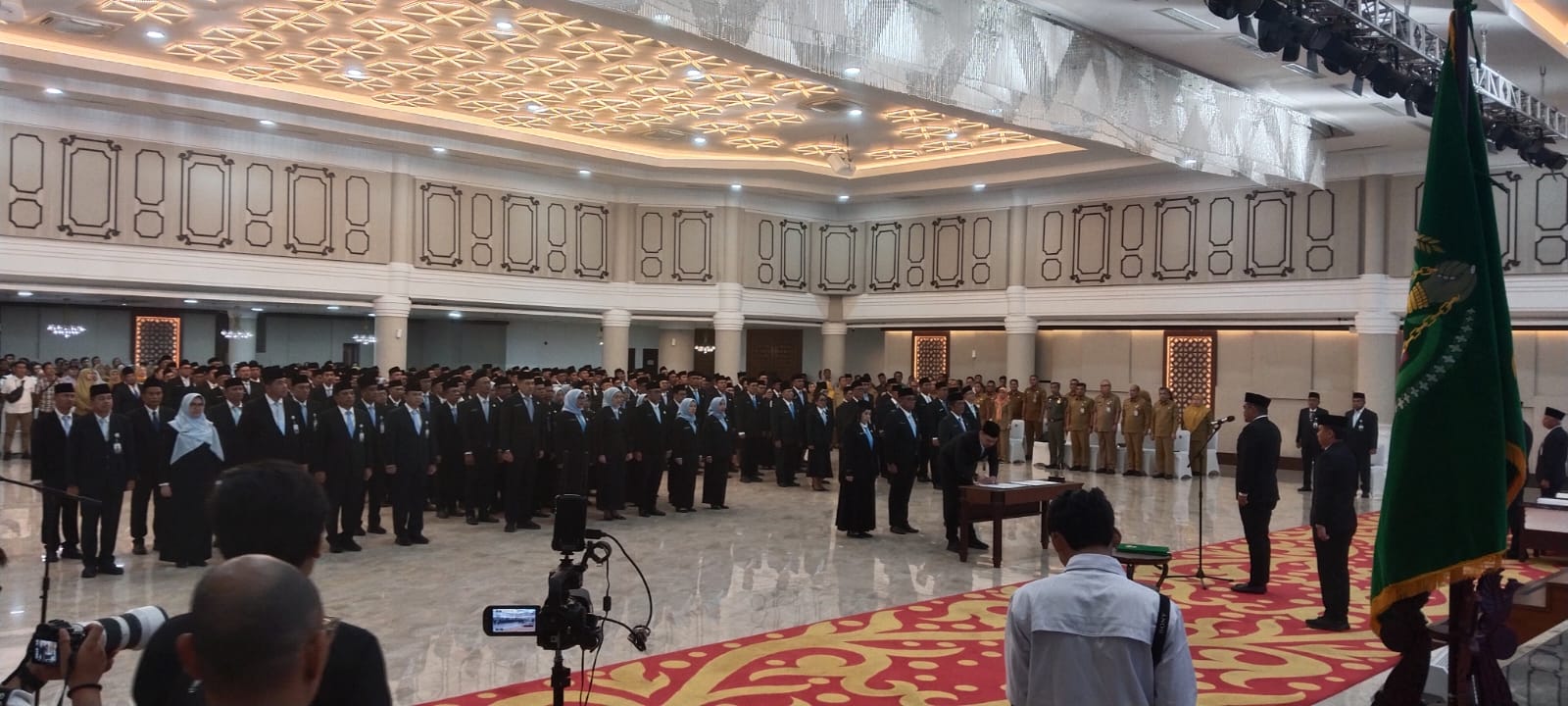 Gubernur Sumatera Utara, Bobby Nasution, melantik dan mengukuhkan sebanyak 308 Pejabat, terdiri dari 11 orang Pejabat Eselon II dan 117 Pejabat Eselon III serta 180 Pejabat Eselon IV, Senin (9/3/2026) di Aula Raja Inal Siregar Lantai 2 Kantor Gubernur Jalan Diponegoro Medan.