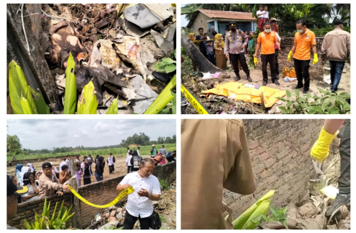 Menindaklanjuti laporan tersebut, kepala desa bersama perangkat desa kemudian melakukan pencarian di sekitar lokasi yang dicurigai menjadi sumber bau.