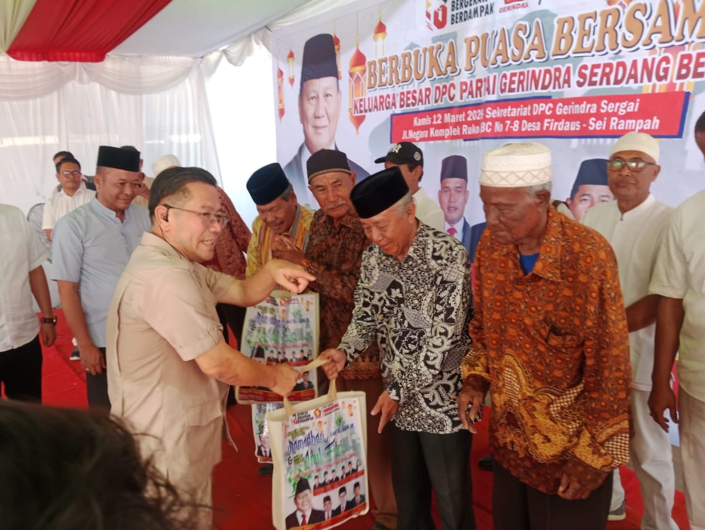 sentralberita | Serdang Bedagai ~ Dalam rangka memeriahkan bulan suci Ramadan 1447 Hijriah, Dewan Pimpinan Cabang (DPC) Partai Gerindra Kabupaten Serdang Bedagai menggelar kegiatan buka puasa bersama sekaligus menyalurkan ratusan paket Idul Fitri kepada anak yatim, Kamis (11/3/2026).