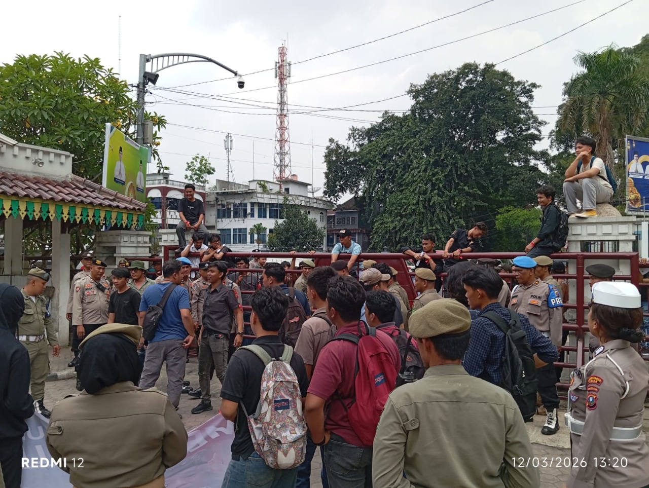 Namun massa tak bergeming, merangsek masuk dengan memanjat gerbang kantor Walikota, yang sengaja ditutup.