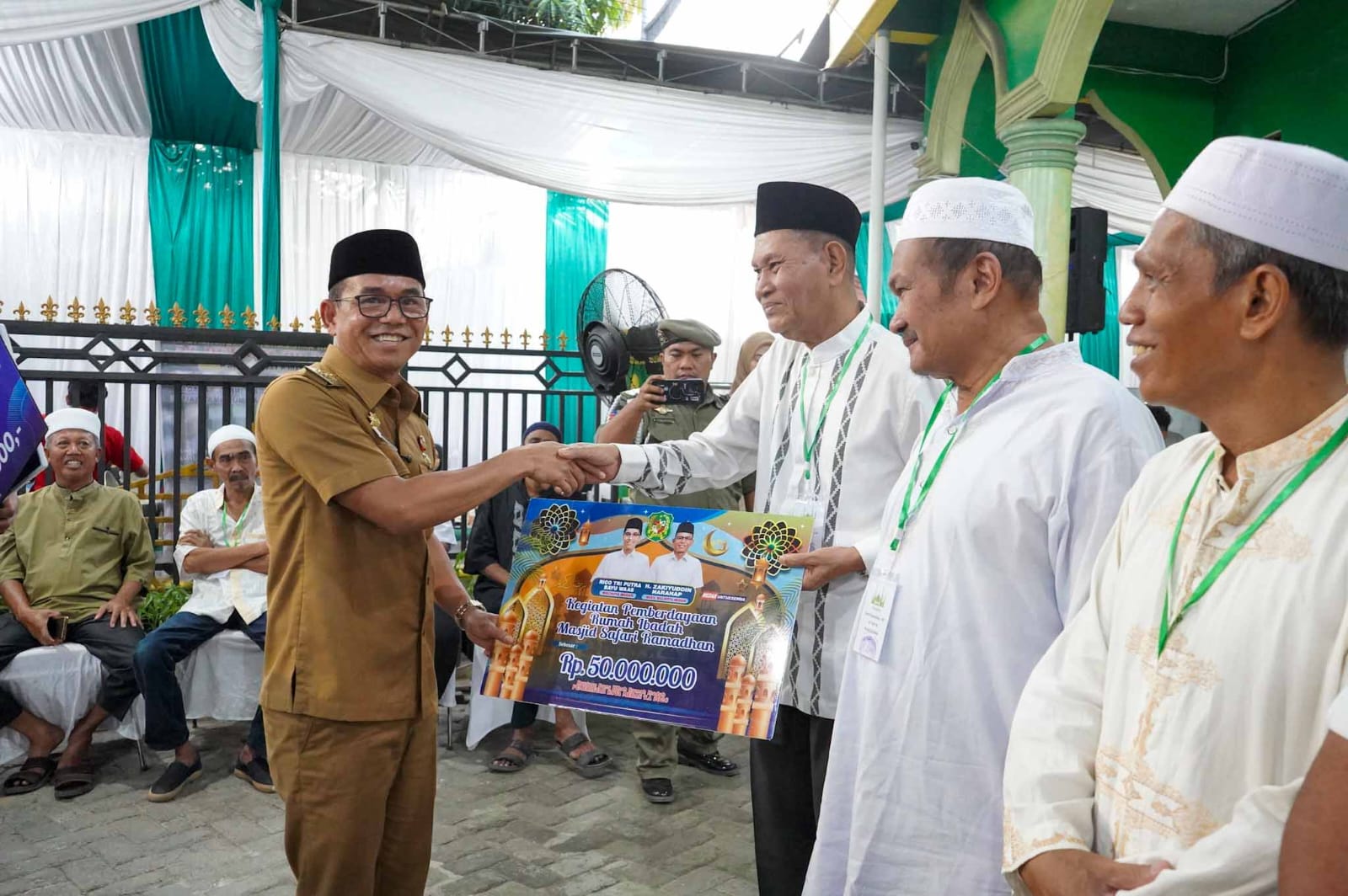 Pemko Medan juga menyerahkan akta pendirian koperasi masjid dan satu unit gerobak usaha guna mendukung kegiatan ekonomi jamaah.