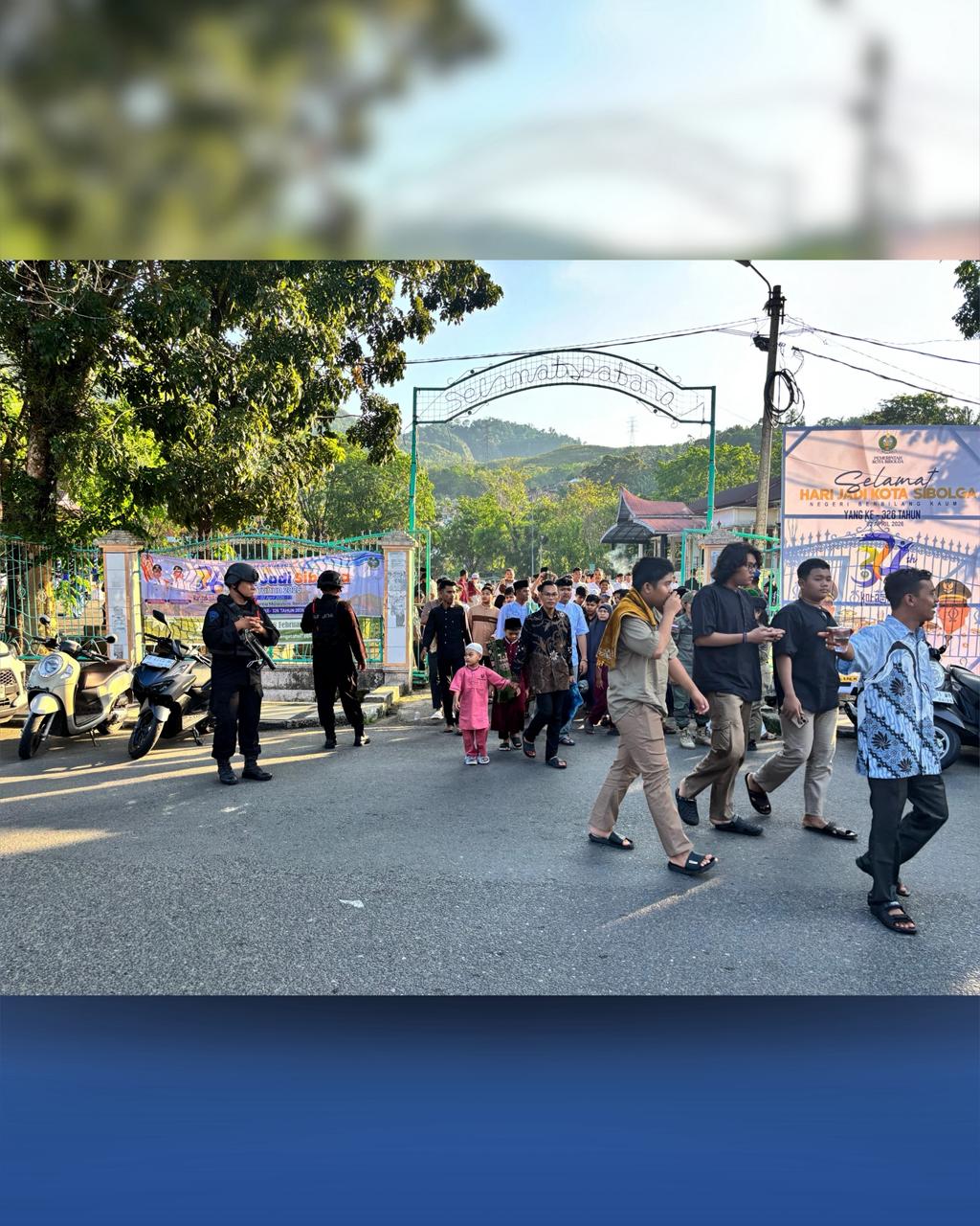 sentralberita|Medan~Dalam rangka memberikan rasa aman dan nyaman kepada masyarakat yang melaksanakan ibadah, personel Kompi 4 Batalyon C Satuan Brimob Polda Sumatera Utara melaksanakan patroli pengamanan Sholat Idul Fitri 1447 H di Lapangan Alun-Alun Kota Gunungsitoli, Sabtu (21/03/2026) pagi.