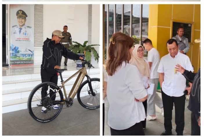 Setibanya di kantor, Bupati tidak langsung memulai aktivitas administratif. Ia melanjutkan perjalanan menggunakan sepeda menuju RSUD Sultan Sulaiman untuk meninjau pelayanan kesehatan.