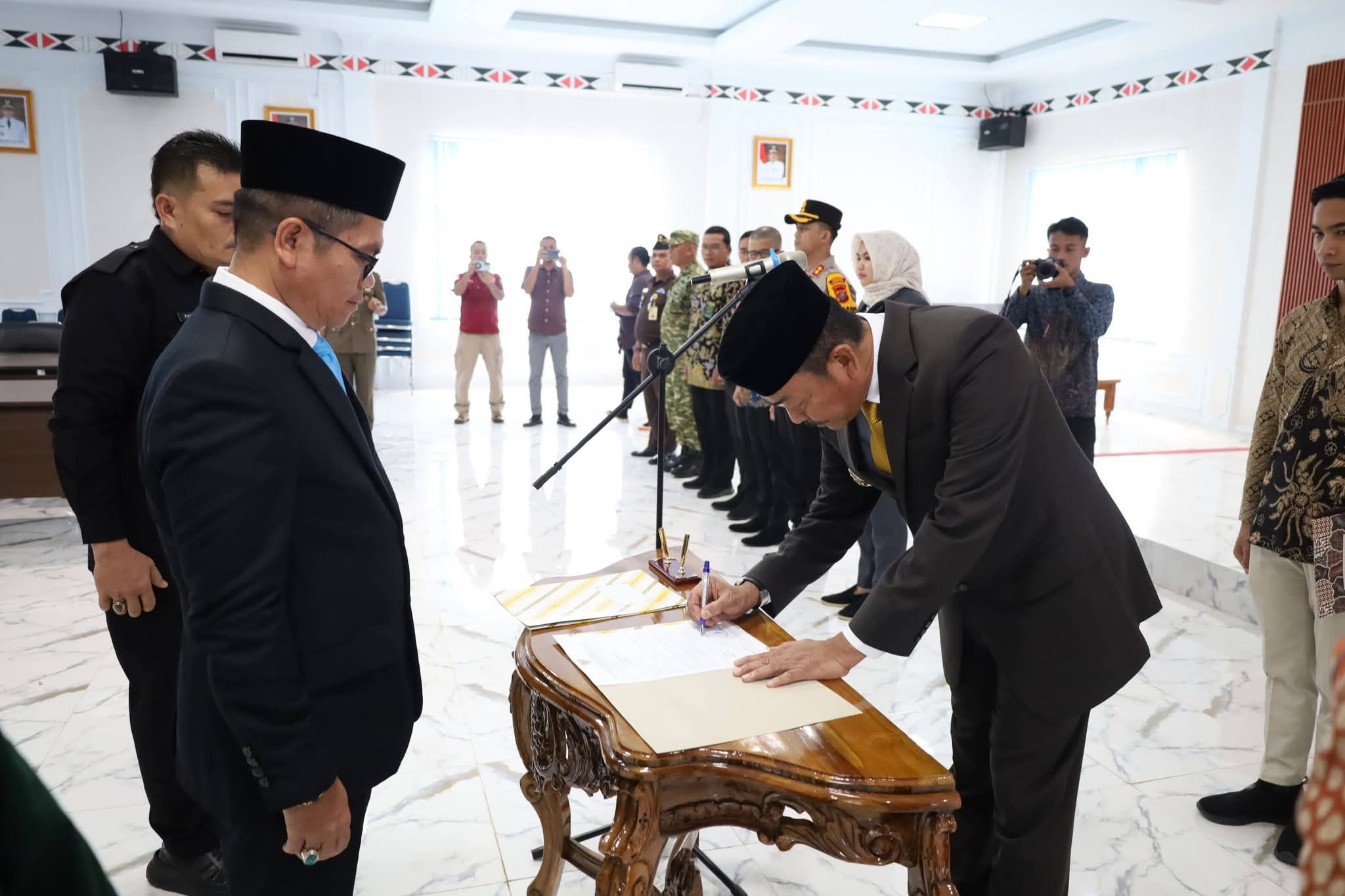 Acara strategis ini turut disaksikan Wakil Bupati Atika Azmi Utammi Nasution, Ketua TP PKK Yupri Astuti Saipullah Nasution, Ketua DPRD H. Erwin Efendi Lubis, Kapolres AKBP Bagus Priandy, Perwira Penghubung, Mayor Inf. Takbir Dahilu, para Asisten dan kepala OPD.(FS)
