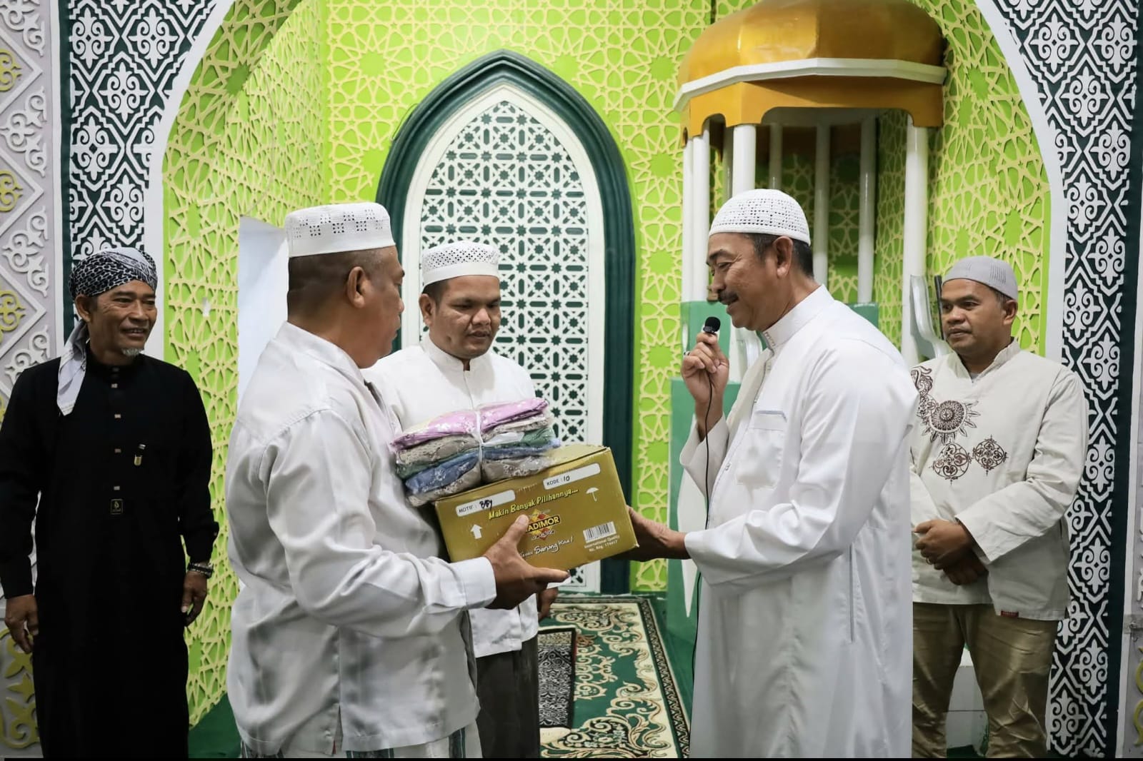 Kegiatan safari Subuh di tutup dengan penyerahan Al-Qur’an, Mukena, dan kain sarung pada BKM Baiturrahman.( FS)