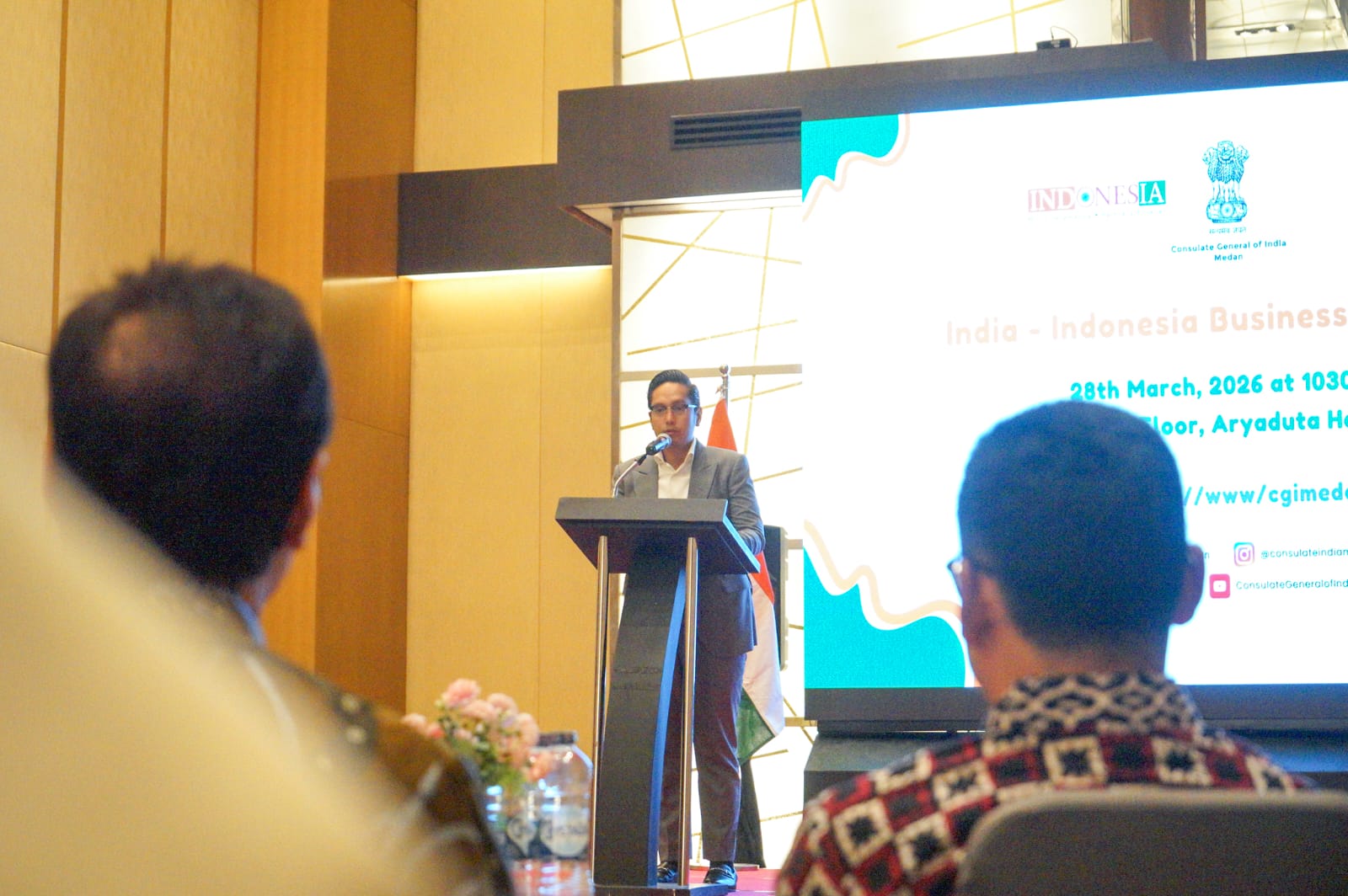 sentralberita|Medan~Wali Kota Medan, Rico Tri Putra Bayu Waas, menghadiri pertemuan strategis bertajuk India – Indonesia Business Promotion bersama Konsulat Jenderal India di Kota Medan, Mr. Ravi Shanker Goel, di Hotel Arya Duta, Sabtu (28/3/2026).