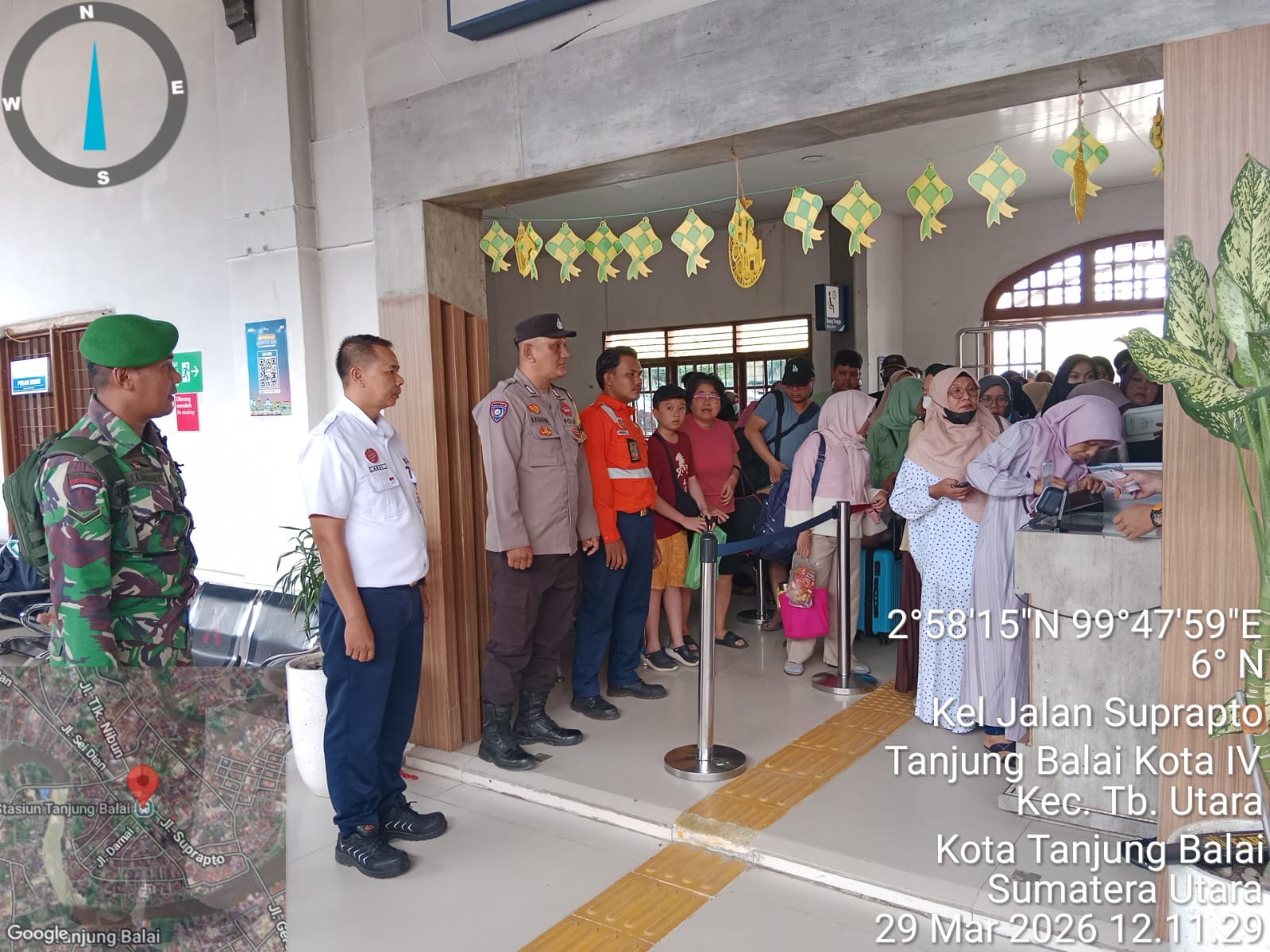 sentralberita|Tanjungbalai~Puasana arus Balik Lebaran 2026 (1447 H) mulai terasa di Stasiun Kereta Api Tanjungbalai. Guna menjamin kenyamanan dan keamanan para penumpang, personel Polsek Tanjungbalai Utara melakukan pengamanan intensif di area stasiun pada Minggu (29/3) siang.